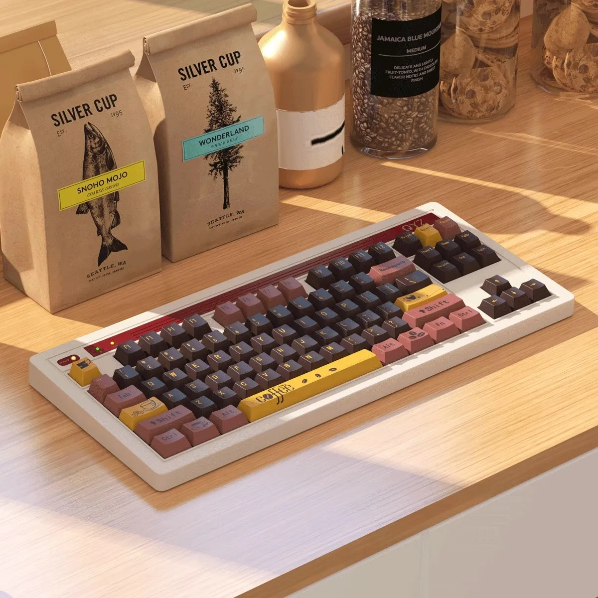 Comprar 1 Juego de teclas de café de la tarde PBT, 5 lados, teclas subcama de tinte, perfil de cereza, teclas a prueba de luz para interruptor MX Wooting 60 80 96