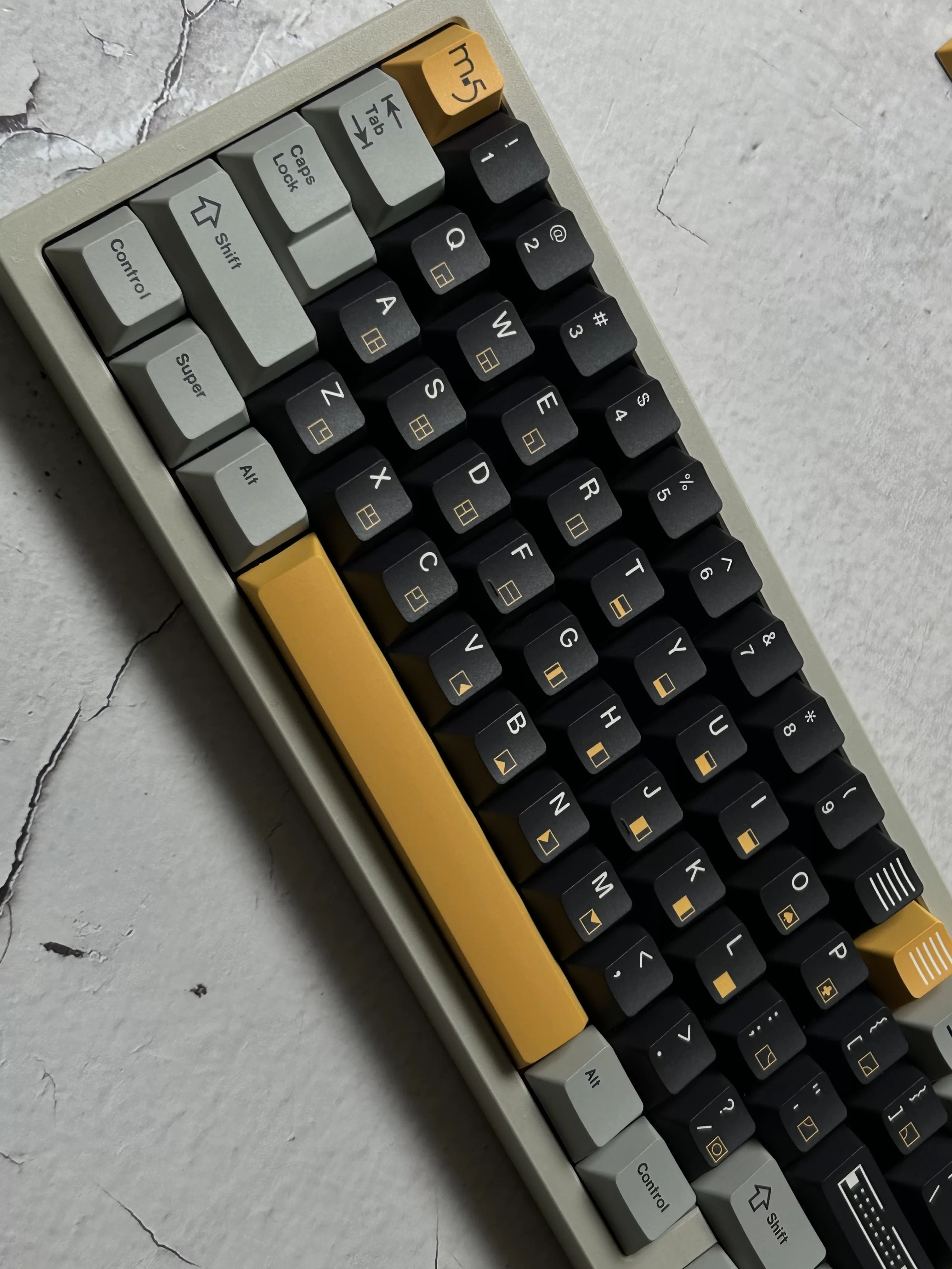 1 Juego de teclas clon DMK M5 PBT, teclas de sublimación de tinte de 5 lados, teclas de perfil de cereza para Alice Wooting, barra espaciadora dividida doble B