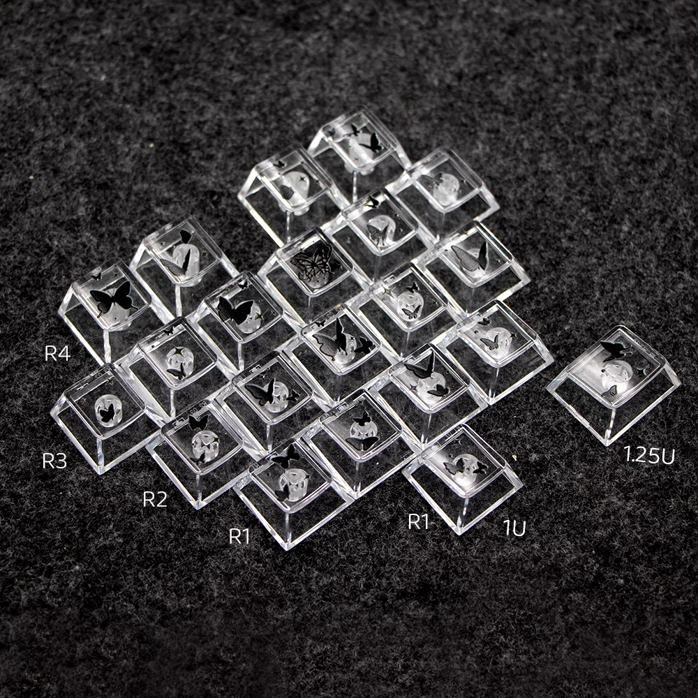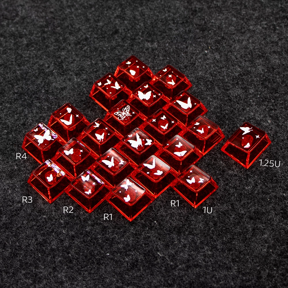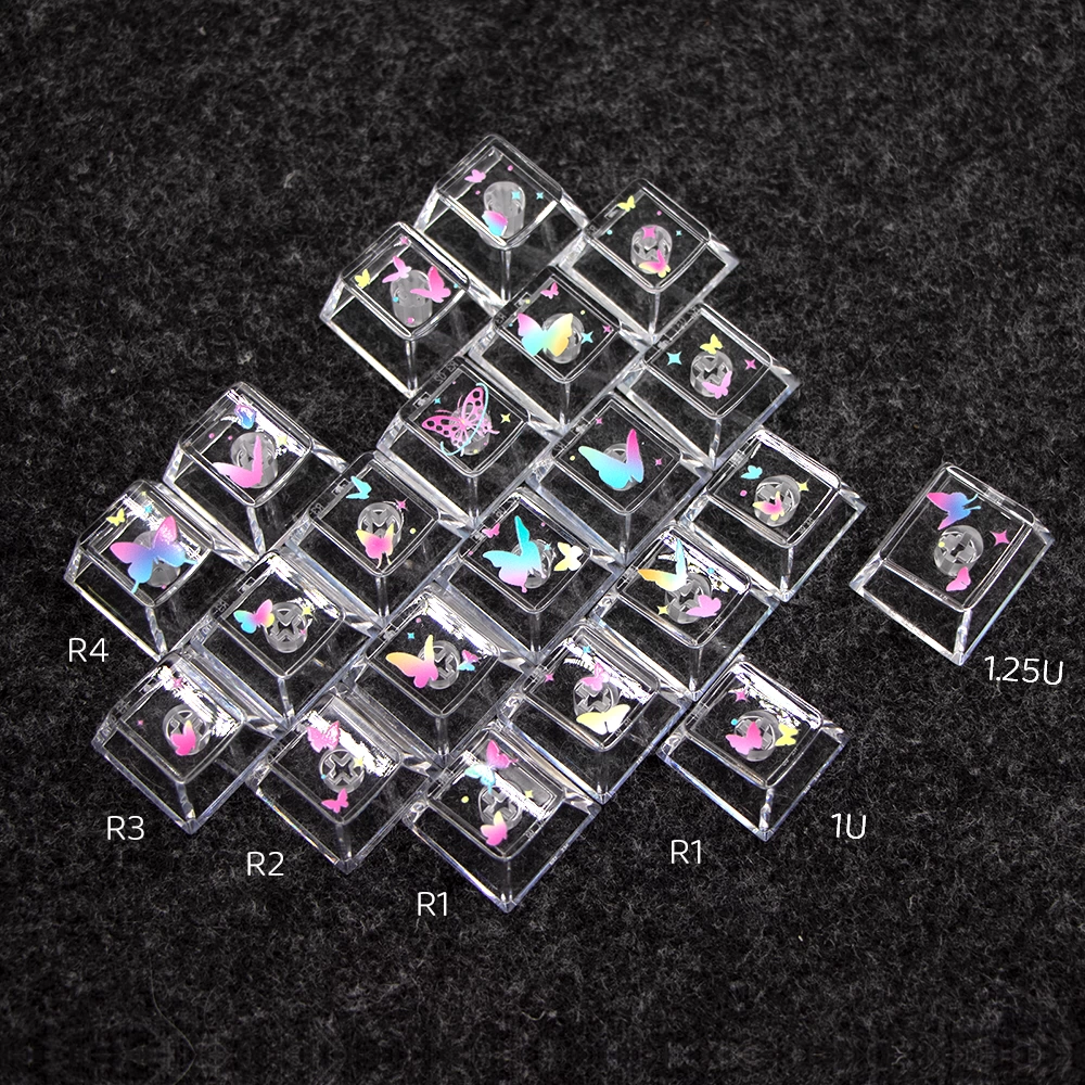 1 Juego de teclas con diseño de mariposa en forma de corazón, perfil de cereza, Material de PC transparente, teclas personalizadas, teclas retroiluminadas DIY