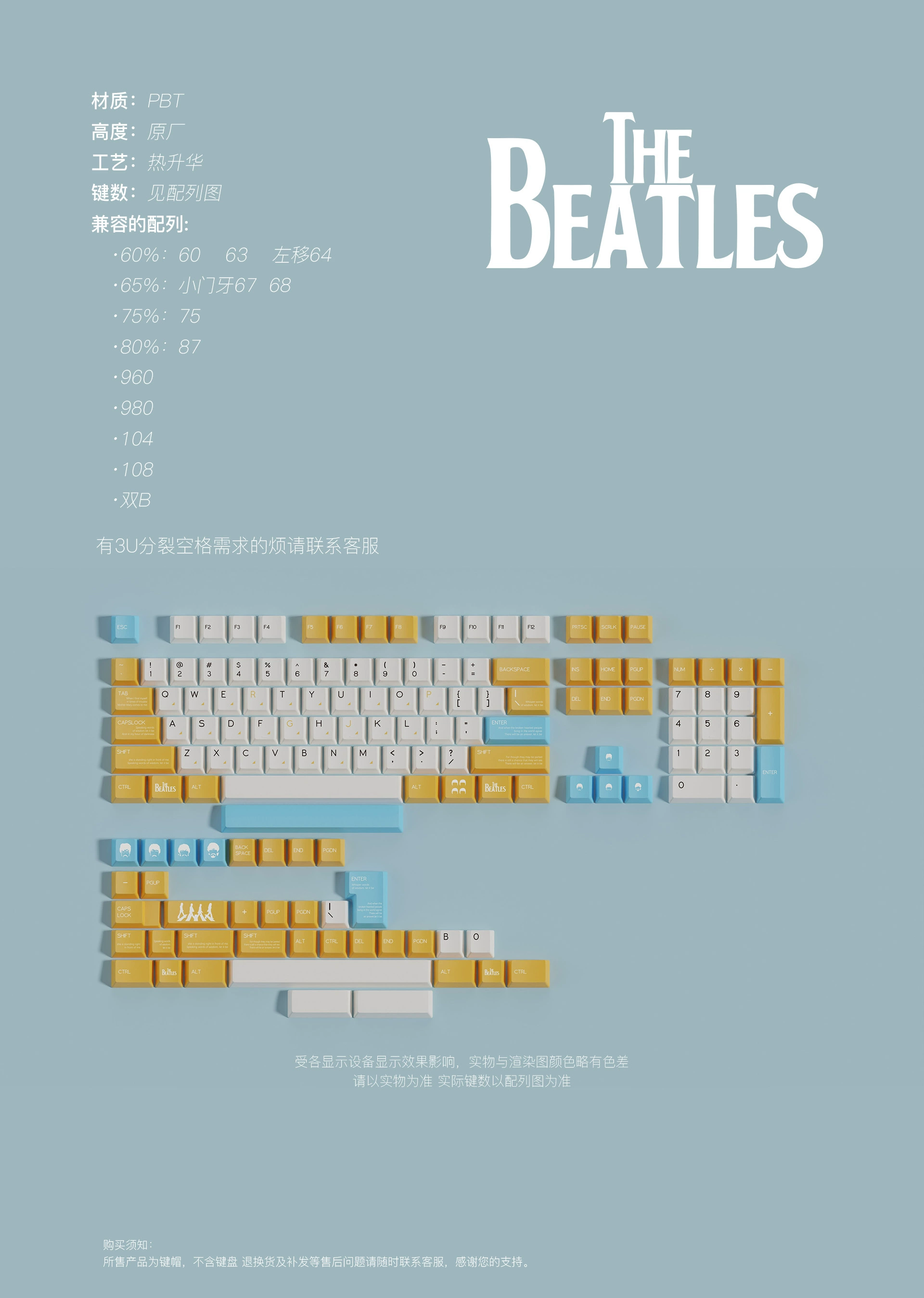 Comprar 1 Juego de teclas The Fab Four Rock Band PBT Dye Sub Key Caps Cherry Profile Keycap para interruptor MX doble B Split 7U Spacebars