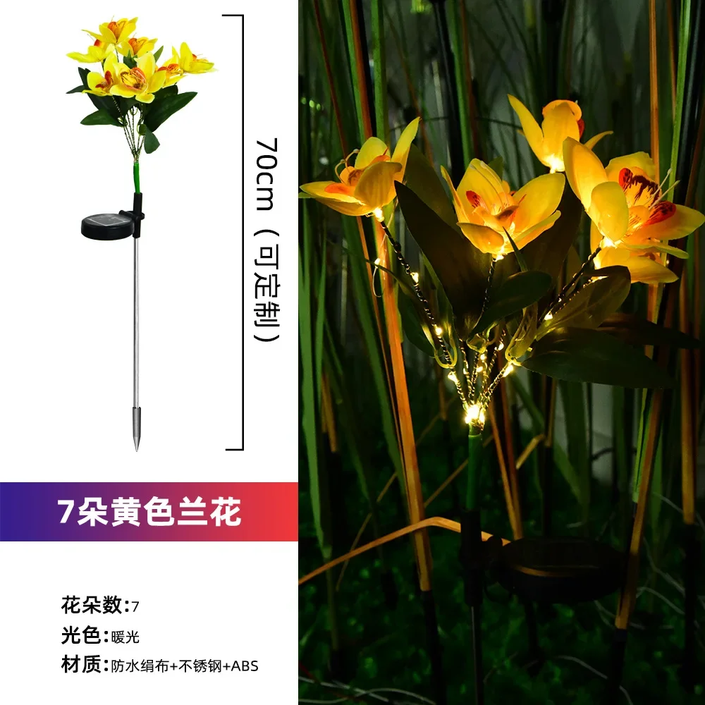 Comprar 1 luces LED solares para el suelo, luces artificiales para césped con flores, luces solares de orquídeas de 7 cabezales para decoración navideña de jardín y Patio