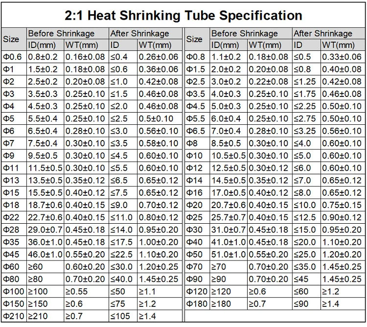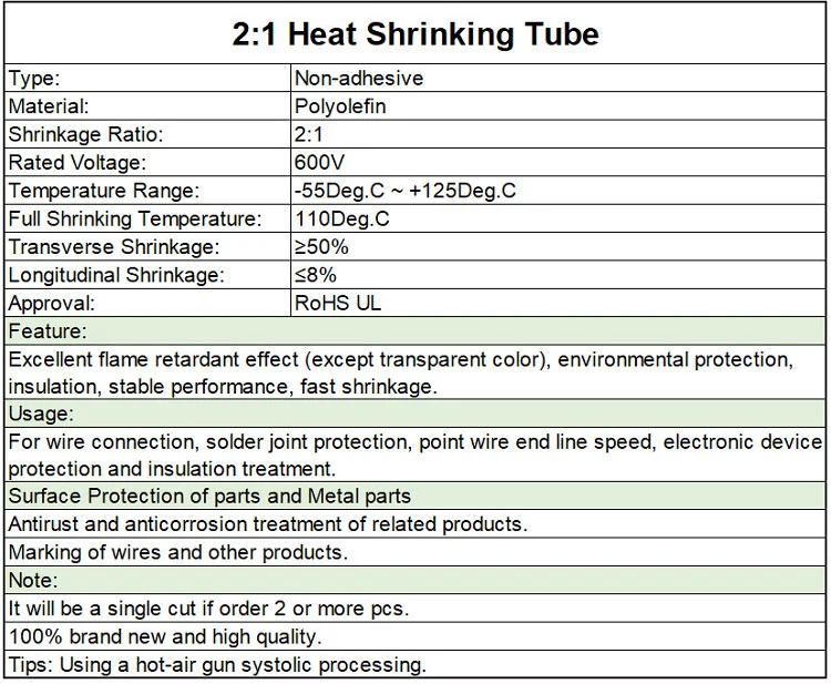 1 metro de diámetro 1 2 3 4 5 6 7 8 9 10 12 14 16 20 25 30 40 50 mm Tubo termorretráctil 2:1 funda de Cable térmico de poliolefina aislada