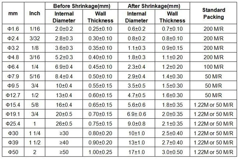Características del tubo de doble pared:(1).Relación de contracción 3:1, adecuada para aislamiento y sellado de formas irregulares.(2) espesor de pared medio, manteniendo la flexibilidad, mayor resistencia de protección mecánica.(3) la capa adhesiva se puede adherir al plástico, caucho y metal.(4) La temperatura de contracción inicial es de 70 C y la temperatura total de contracción es de 125 C.(5) la temperatura de fusión de la capa interna: 70 C -100 C;(6) El rango de temperatura de trabajo: -40 C ~ 125 C