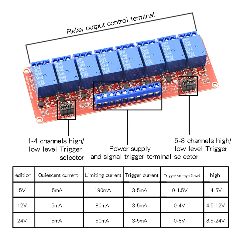 3.Voltaje de funcionamiento del módulo: 5V / 12V / 24V