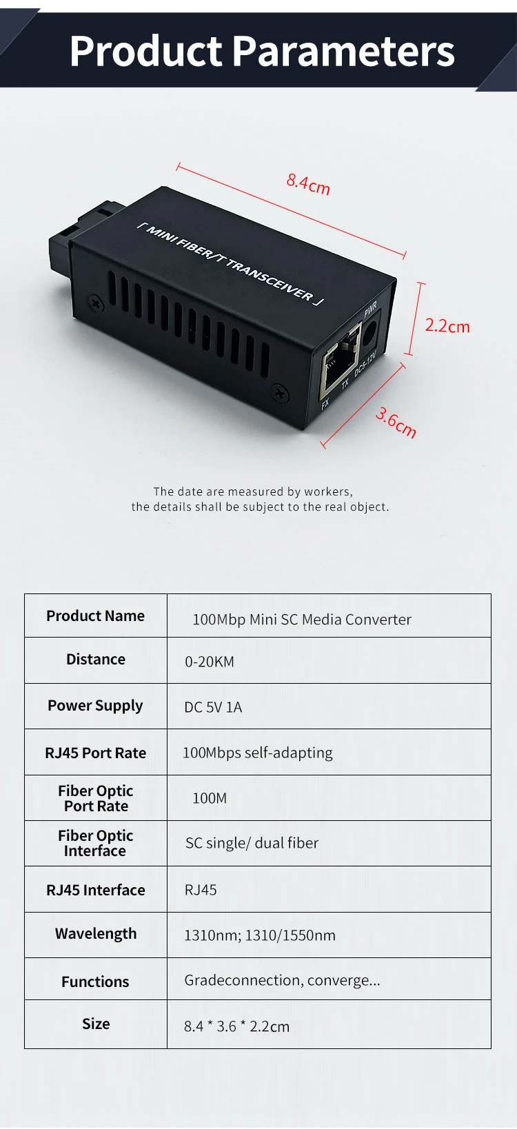 1 par 10/100M Mini interruptor fibra Ethernet convertidor de medios fibra óptica 20KM A/B SC monomodo transceptor óptico de fibra única