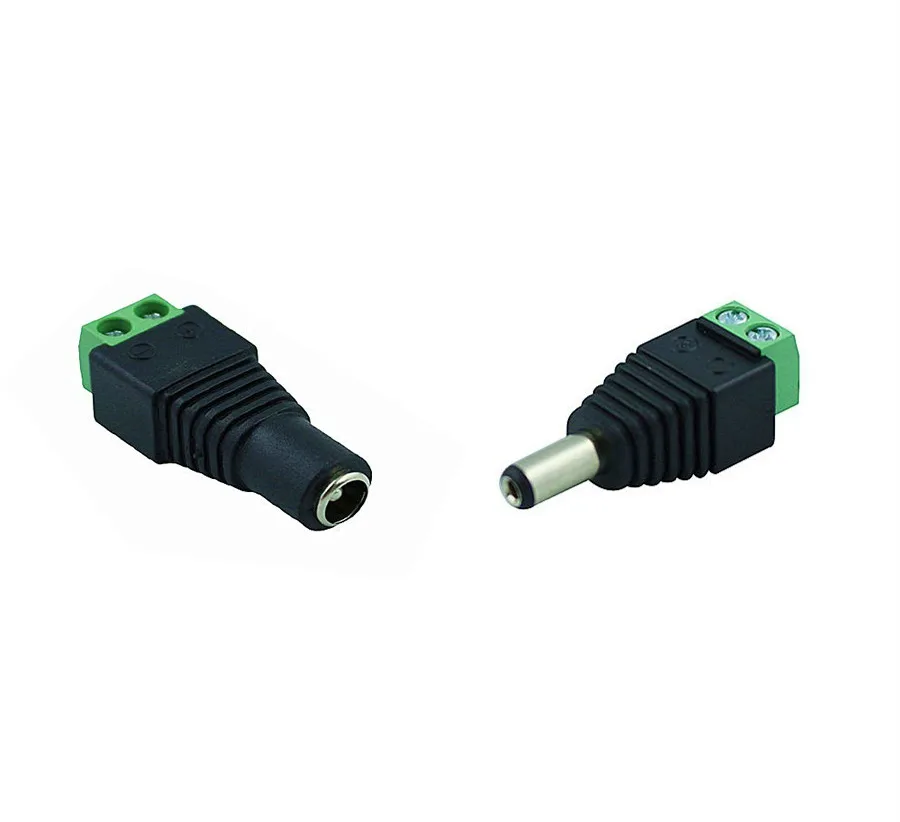 Comprar 1 par de 2,1x5,5 DC Power macho/2,5x5,5 hembra DC Power Plug, adaptador de enchufe para cámara CCTV, tira de luz LED