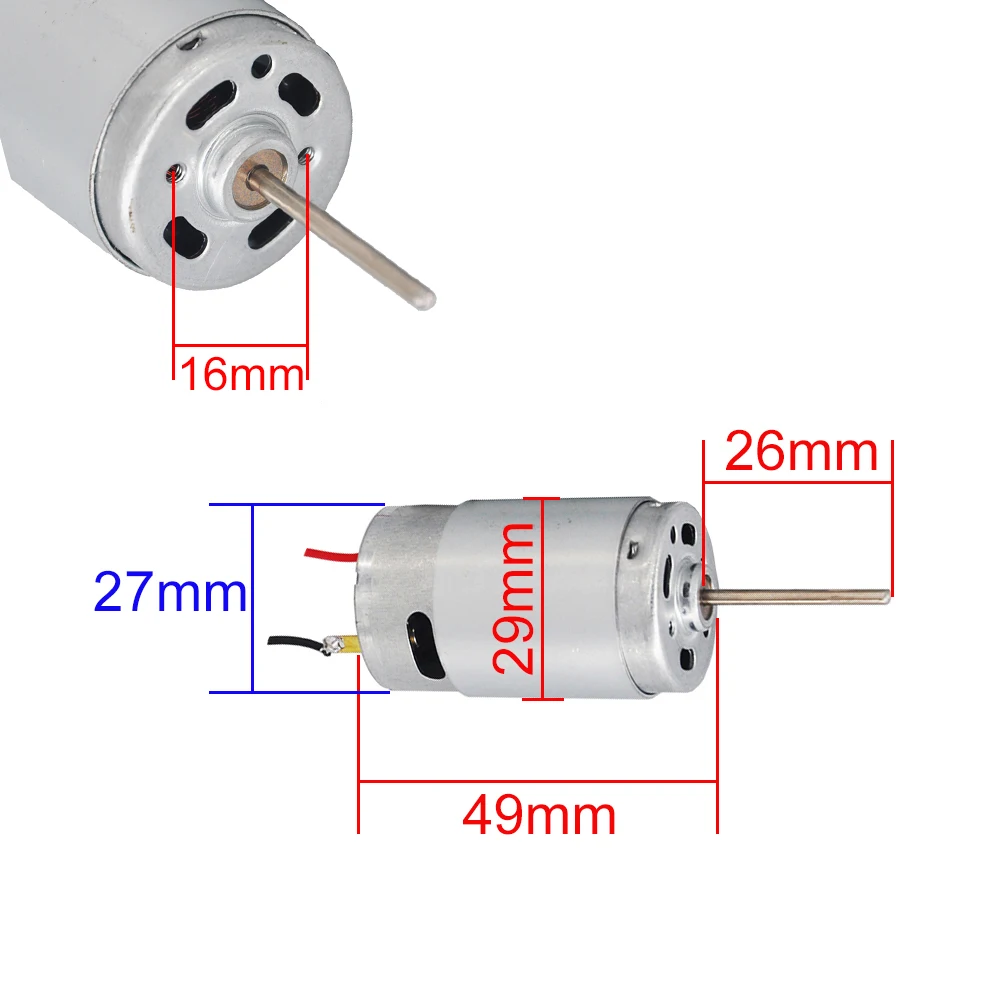 - Velocidad de rotación: aprox.8500 rpm/6 V, 10250 rpm/7,2 V, 13000 rpm/9 V