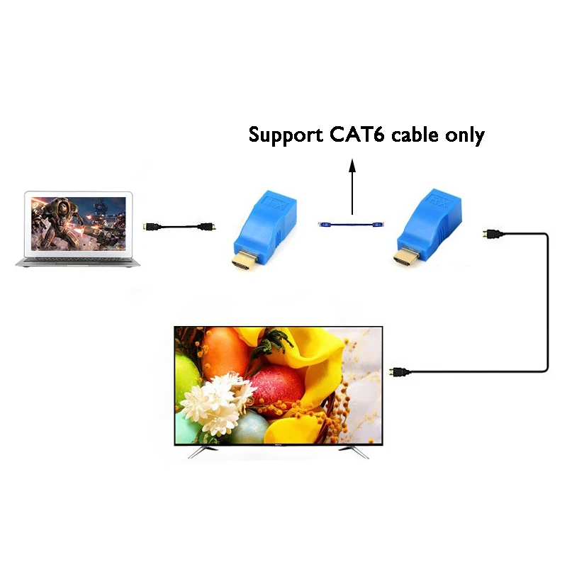 Comprar 1 par de adaptador extensor compatible con HDMI RJ45 4K de hasta 30m sobre Cable de extensión LAN Ethernet de red CAT6 RX TX para HDTV DVD PS3