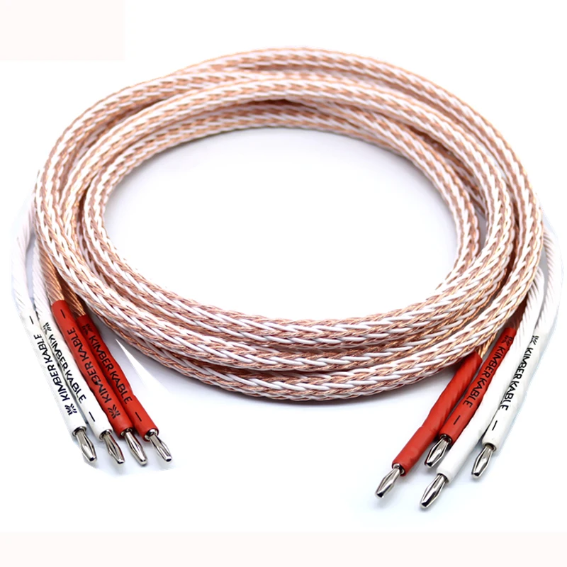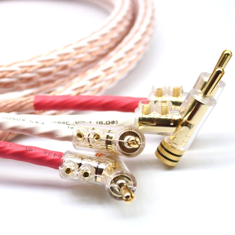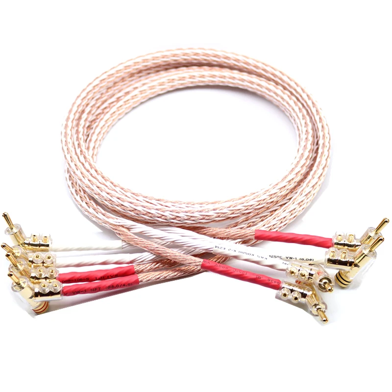 Comprar 1 par de audio Hifi de alta gama, enchapado en Y en forma de pala a enchufes banana, 12TC, 24 núcleos, interconector de altavoz, cable de Audio