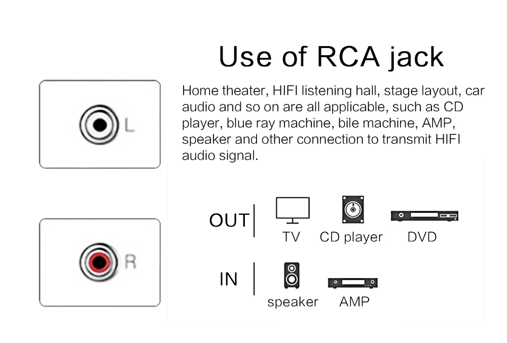 1. With RCA connectors which is made of Gold-plated plug, metal shell, and advantages of metal shell can be shielded from external interference.