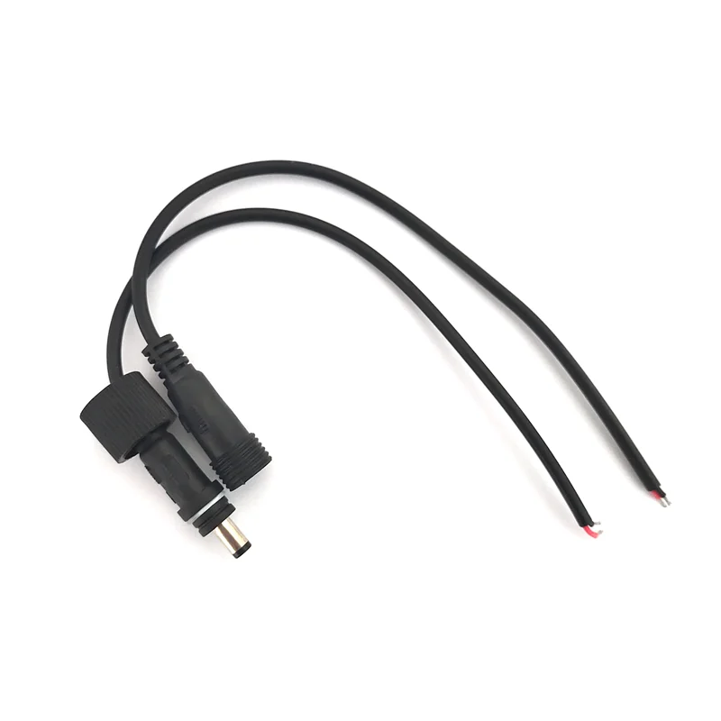 Comprar 1 par de cables de alimentación de CC hembra y macho, conector de Cable negro impermeable, 2 pines, 22AWG, 5,5x2,1mm