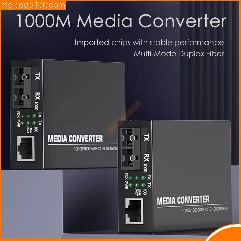 Comprar 1 par de convertidores de medios ópticos Gigabit 1000M multimodo UPC 2 puertos SC a 1 transceptor de fibra RJ45 1310nm