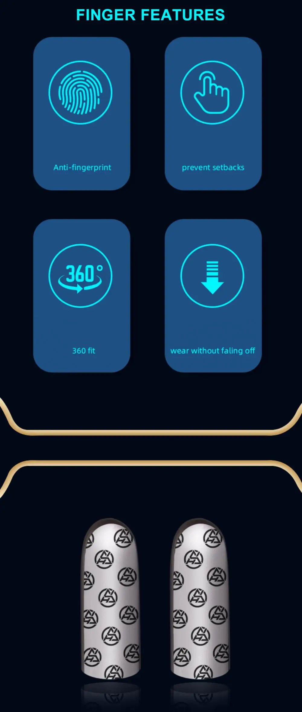 • Las tangas para los dedos proporcionan un funcionamiento duradero y libertad para controlar el juego, lo que le permite disfrutar del juego al máximo.