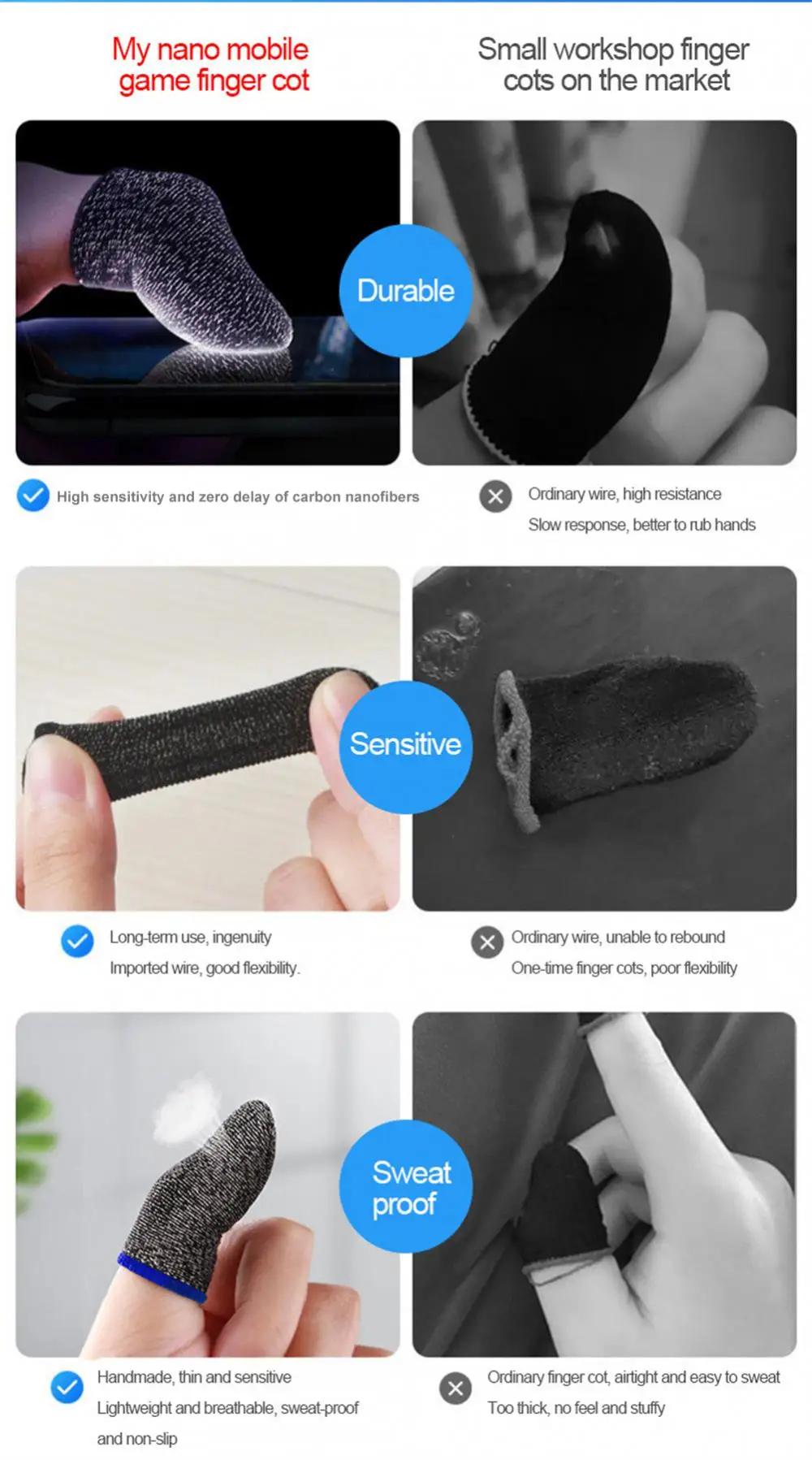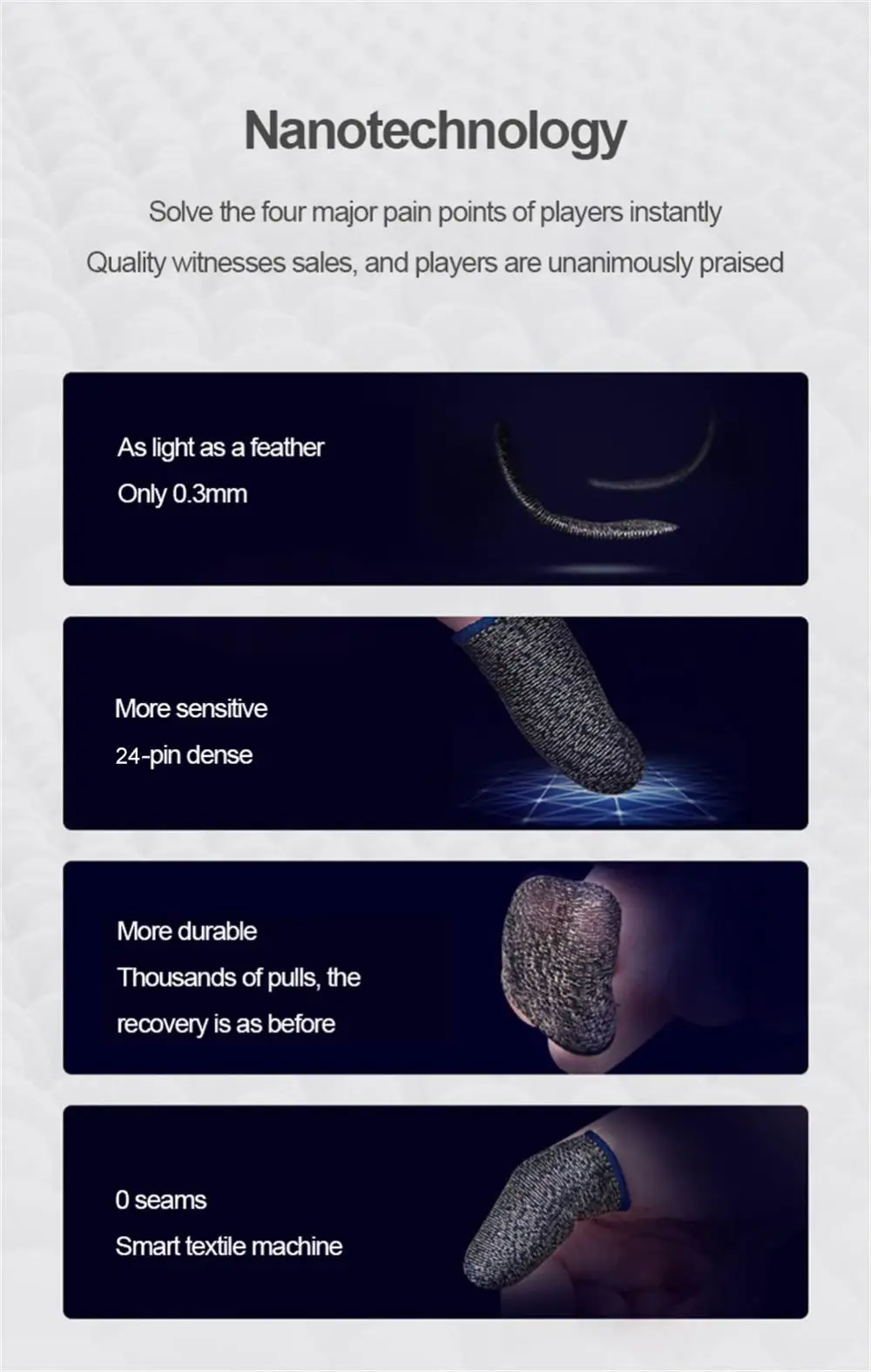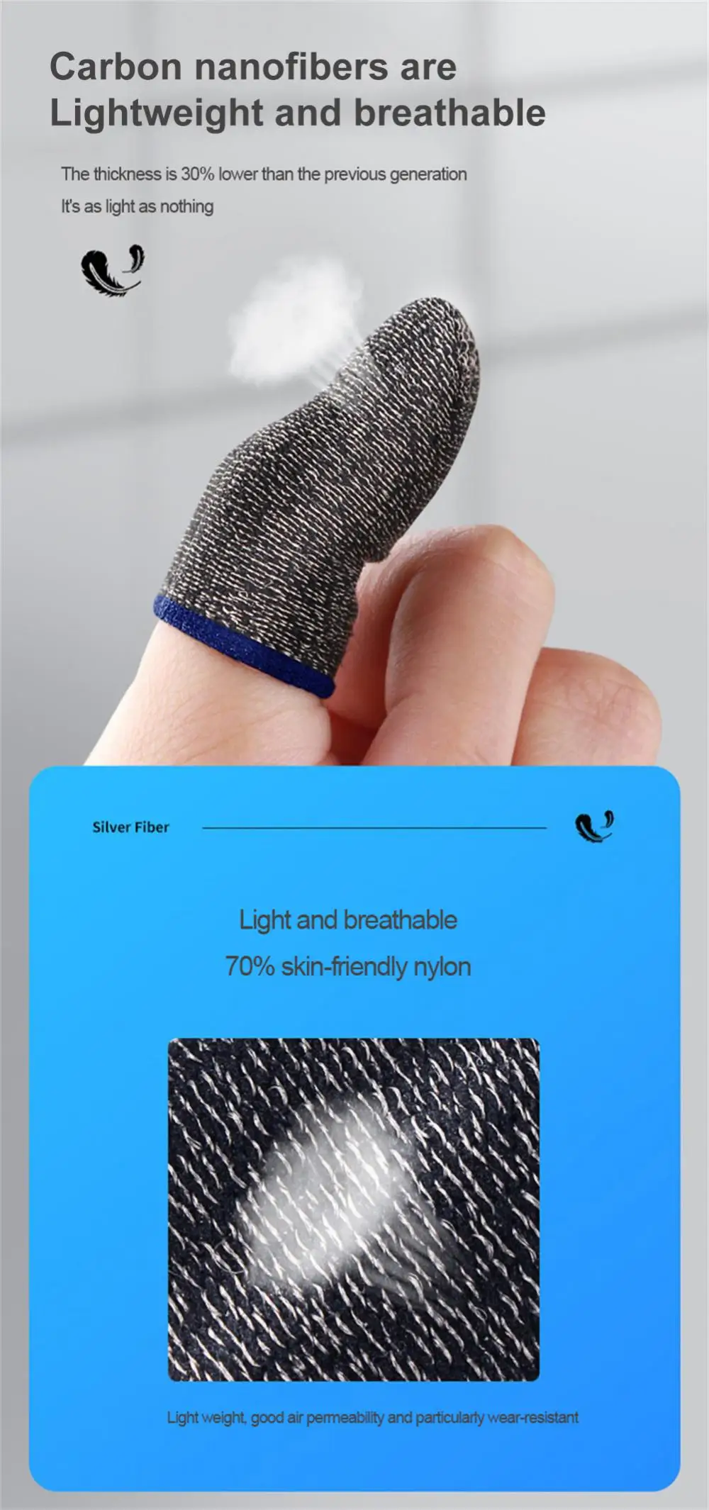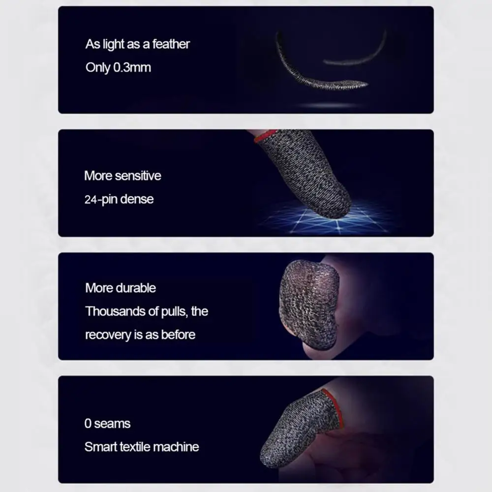 2. Alta sensibilidad: las fundas de fibra para los dedos hacen que sea más sensible a la pantalla del teléfono móvil y cómodo, lo que te ayudará a mejorar la experiencia de juego.