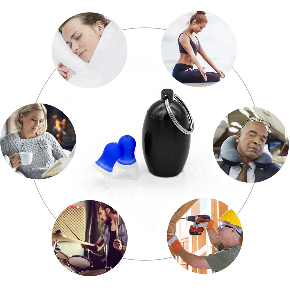 1 par de tapones para los oídos impermeables y suaves con reducción de ruido, tapones para los oídos de silicona para dormir y nadar, orejeras negras voladoras a prueba de ruido