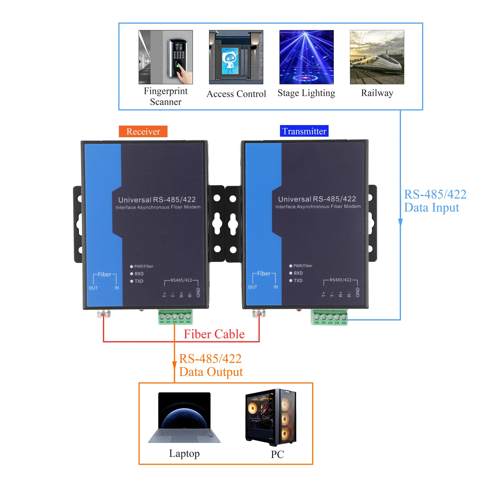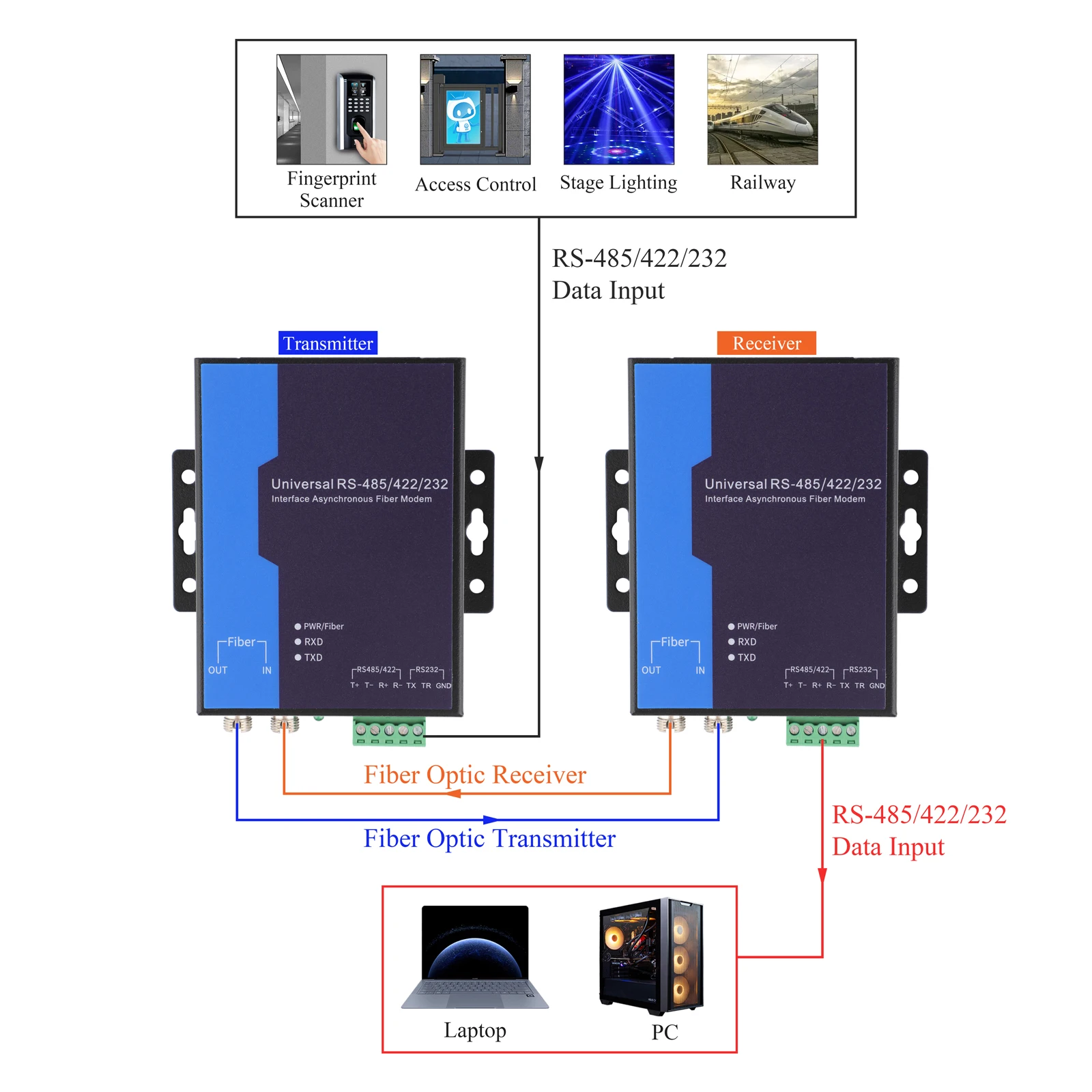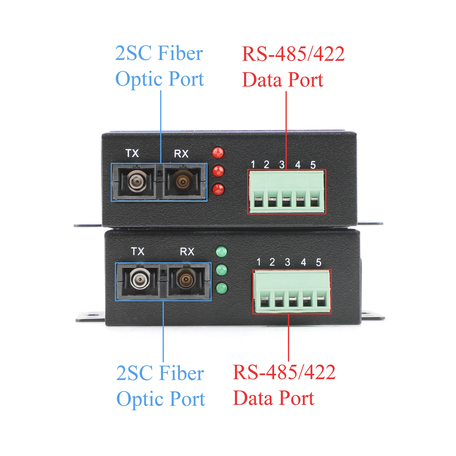 1.El terminal óptico 485/422/232 (terminal óptico serie) proporciona datos del puerto serie RS-232/485/422 a transmisión de fibra óptica.