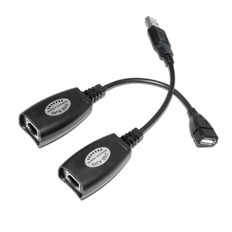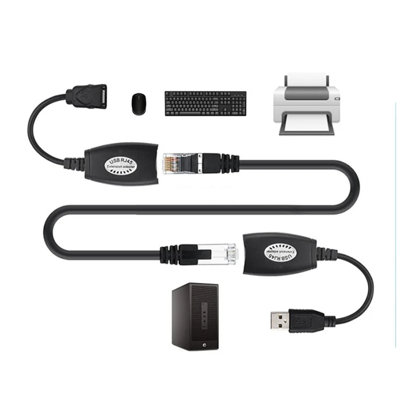 Comprar 1 par USB a RJ45 LAN adaptador de Cable de extensión Ethernet convertidor extensor de distancia de 50M sobre Cable Cat5E/6 accesorios de computadora