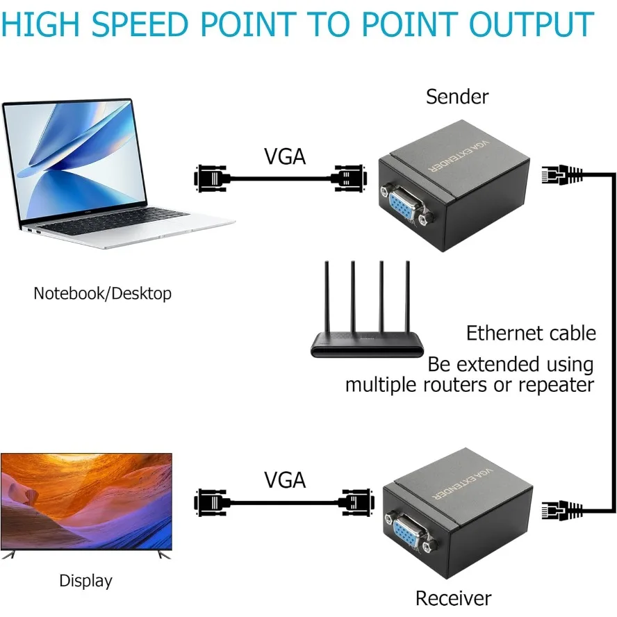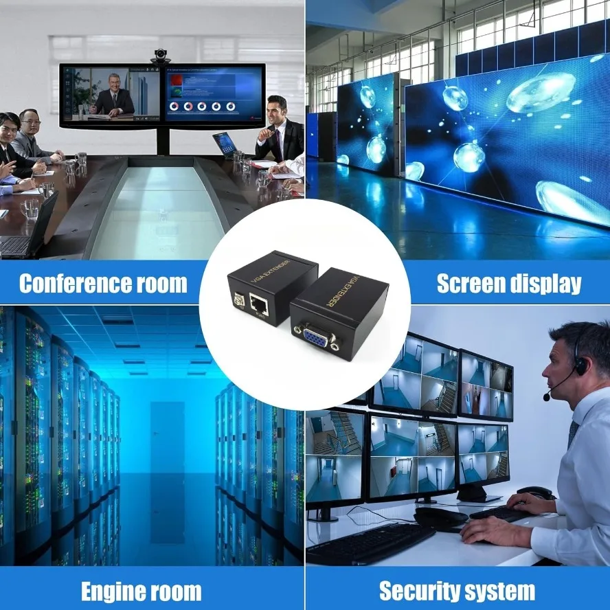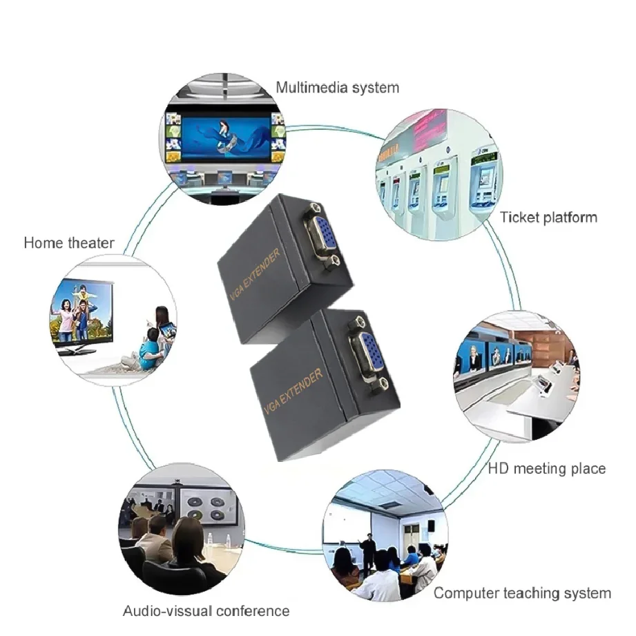 1.La transmisión de señal VGA de larga distancia puede extender las señales VGA y de audio a 60 metros a través de un cable CAT5E/6.