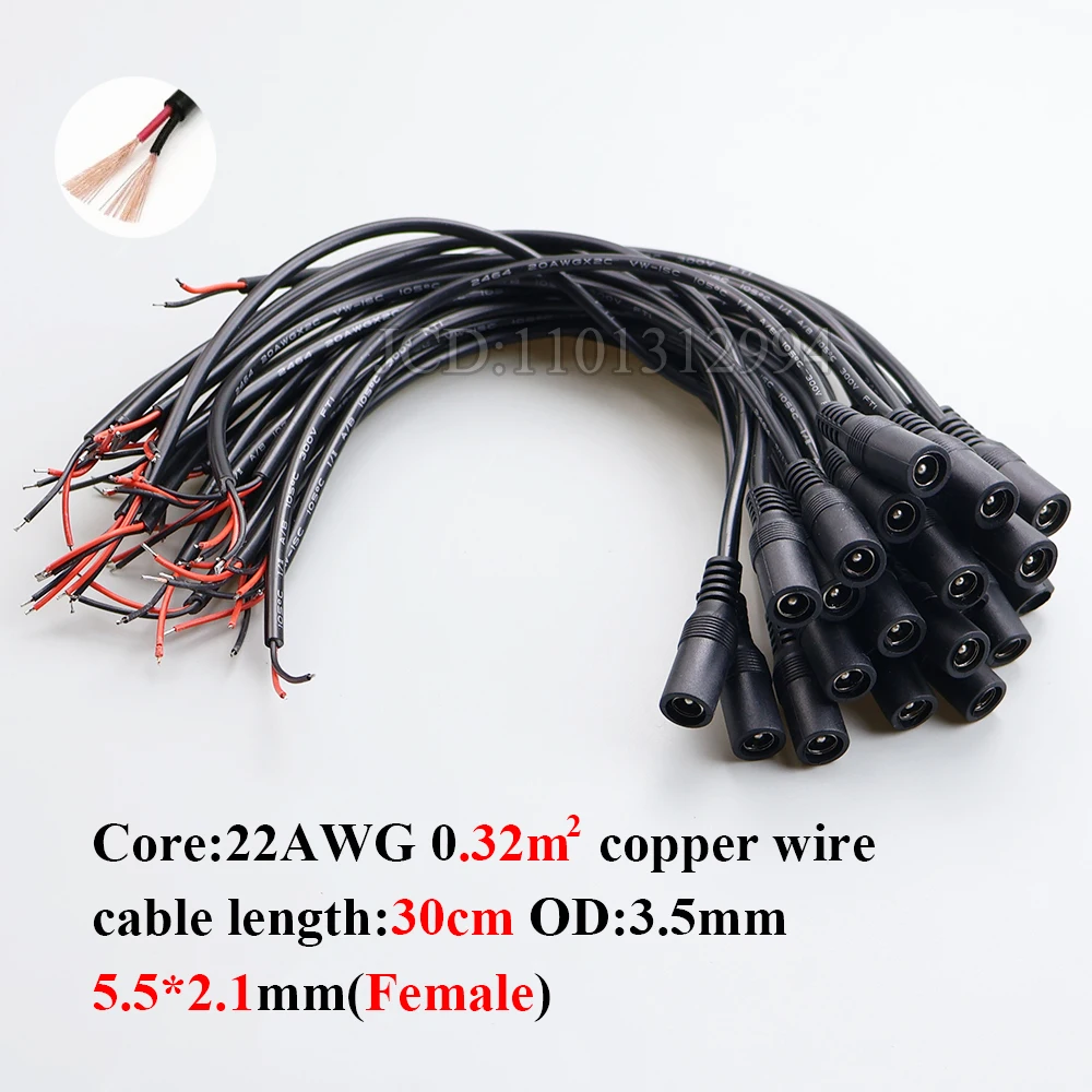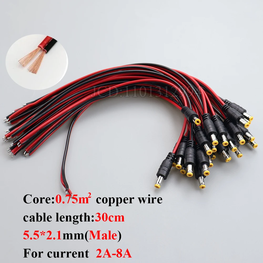 1 pieza 5.5*2.1/2,5mm macho hembra jack cable adaptador enchufe fuente de alimentación 12V CC conjunto de conectores para tira de luz LED cámara CCTV