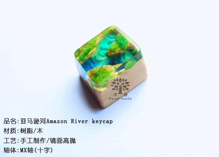 1 pieza de tapa de tecla de resina hecha a mano, teclado mecánico, tapa de llave de madera de resina para Cur De Voh Lake Amazon River