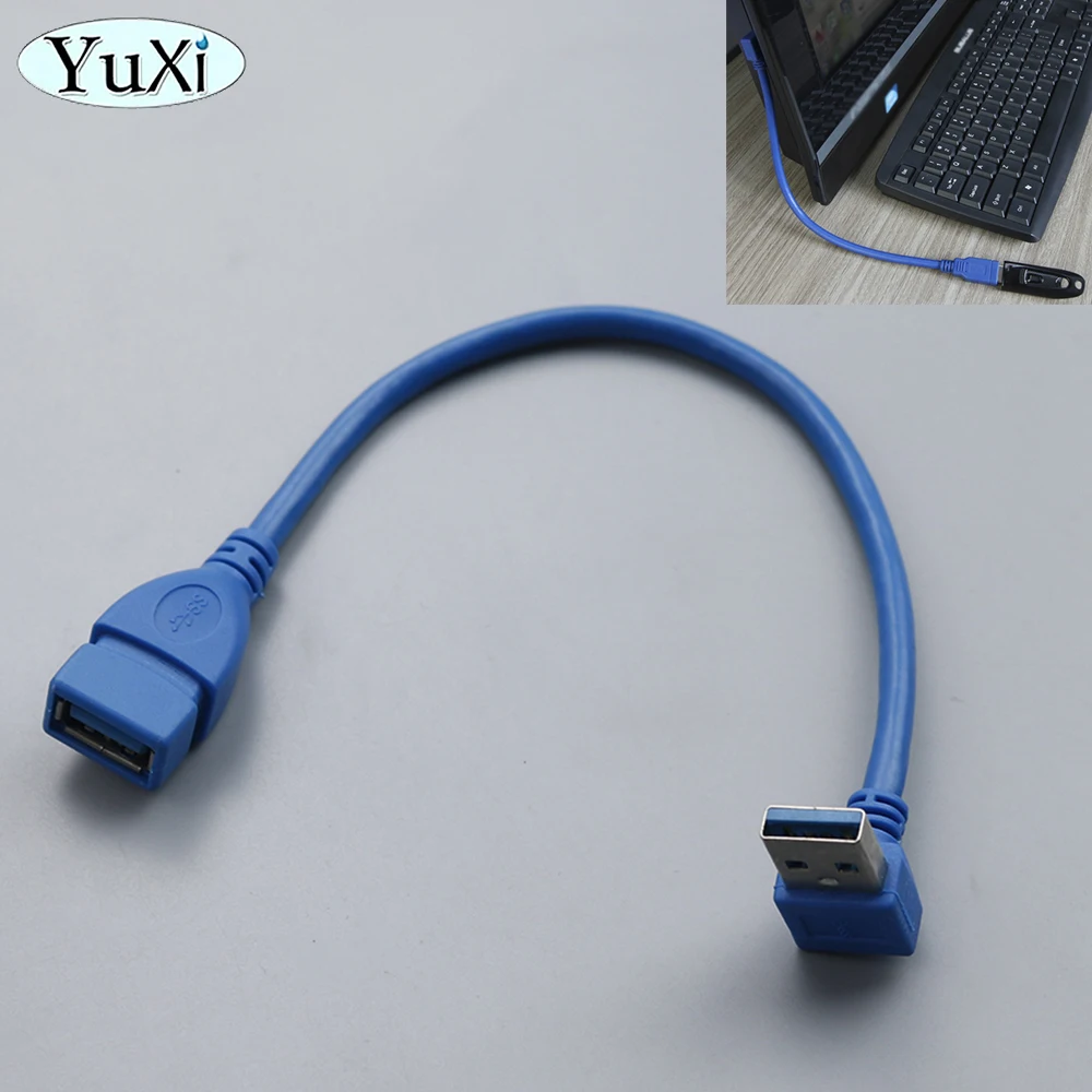 1 pieza USB3.0 hembra a macho 90 adaptador de Cable de extensión en ángulo derecha izquierda abajo hacia arriba azul Cable de extensión USB 3.0 23-25 CM para PC Laotop