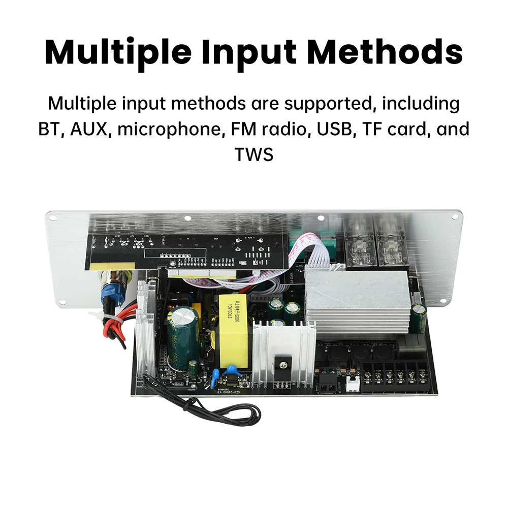 3.Múltiples métodos de entrada, compatible con BT+AUX+micrófono+FM+USB+tarjeta TF+TWS