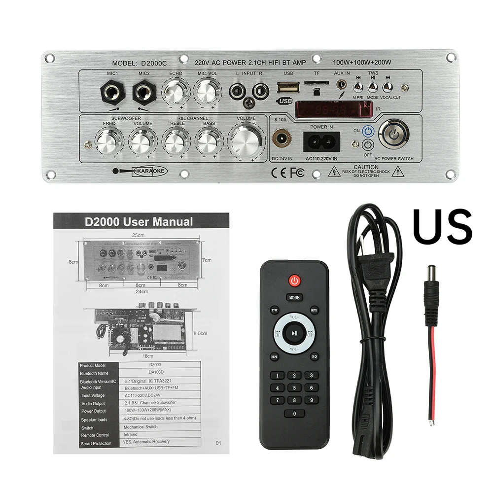Fuente de alimentación adecuada: DC 24V/5A o superior, AC110-20V (cuanto mayor sea el voltaje, mayor será la potencia de salida)