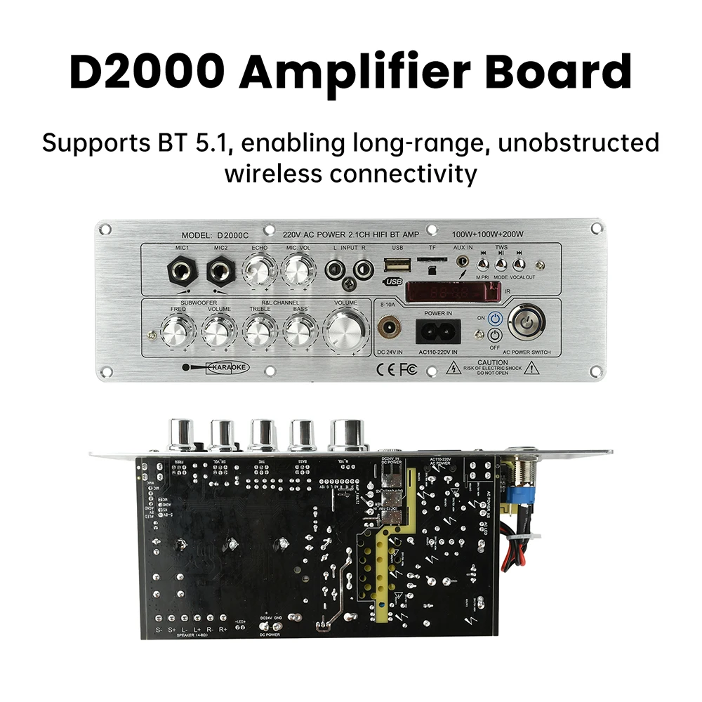 Salida de 2.1 canales, compatible con salida de alta potencia de 100W+100W+200W