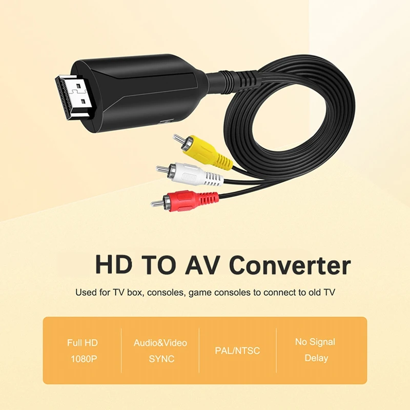 1 Juego de adaptador de convertidor de vídeo HDMI Compatible con Cable de conversión AV RCA HD
