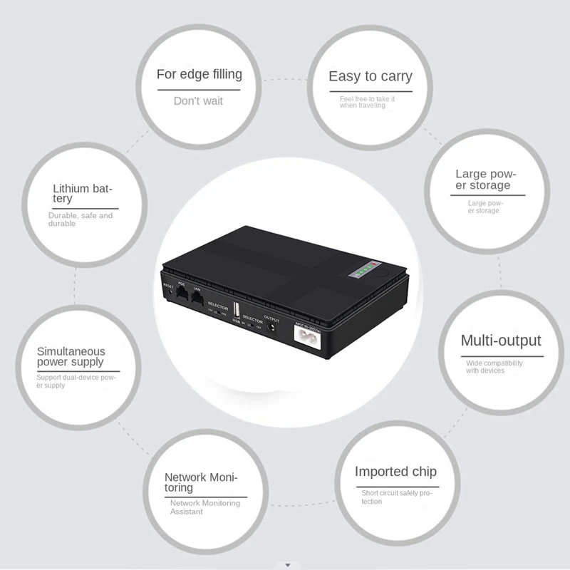 1 Juego de fuente de alimentación ininterrumpida Mini UPS USB POE 10400Mah batería de respaldo para enrutador Wifi CCTV (enchufe estadounidense)