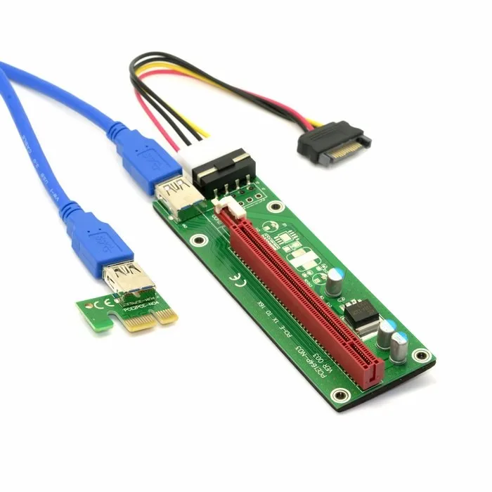 Comprar 1 set de tarjeta elevadora PCI-E PCI Express 1x a 16x, Cable de datos USB 3,0, SATA a 4Pin IDE Molex, fuente de alimentación para equipo de máquina minera BTC