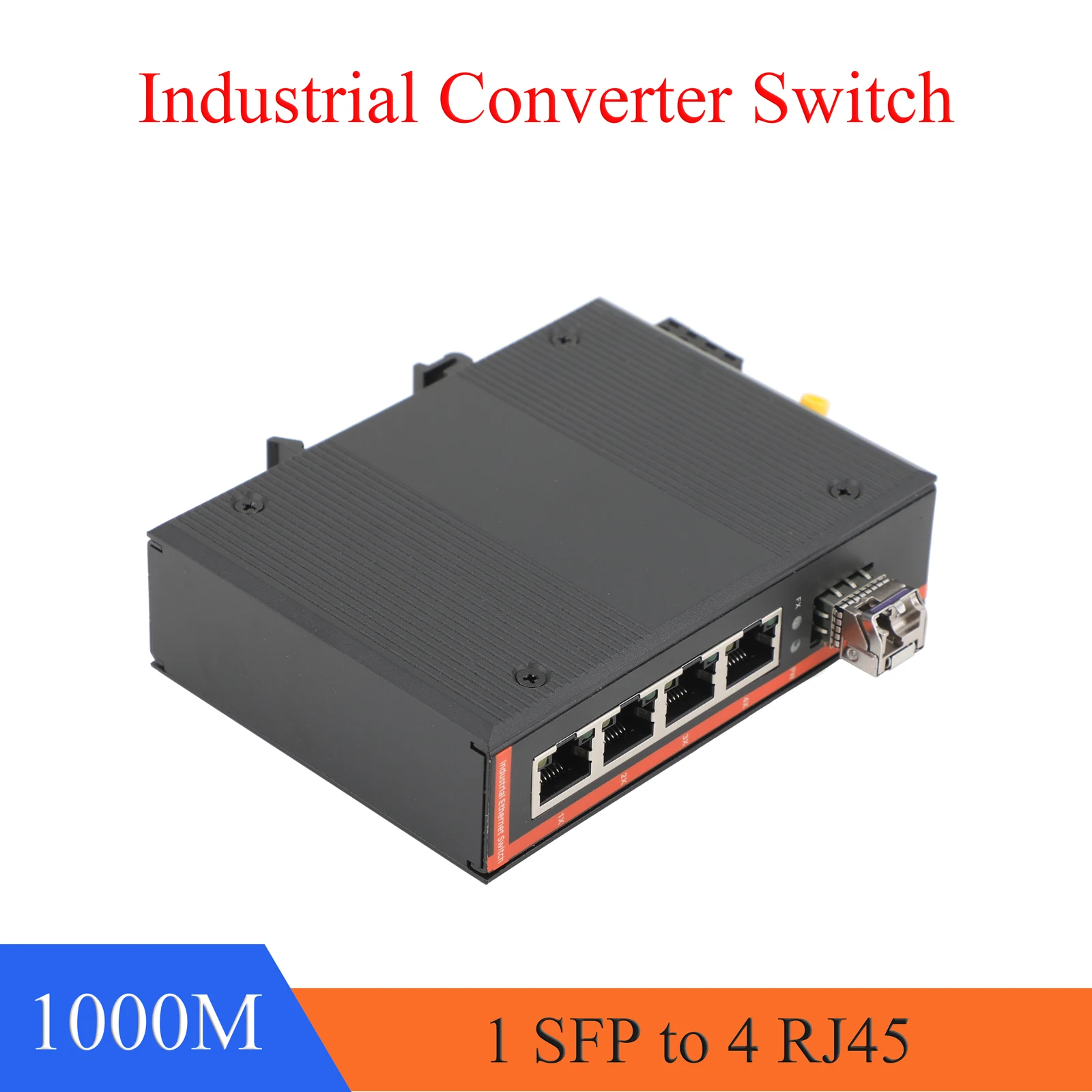 Transceptor Industrial Gigabit SFP 1 SFP a 4 RJ45 10/100/1000M interruptor de fibra óptica 550M/2KM/3KM para red industrial