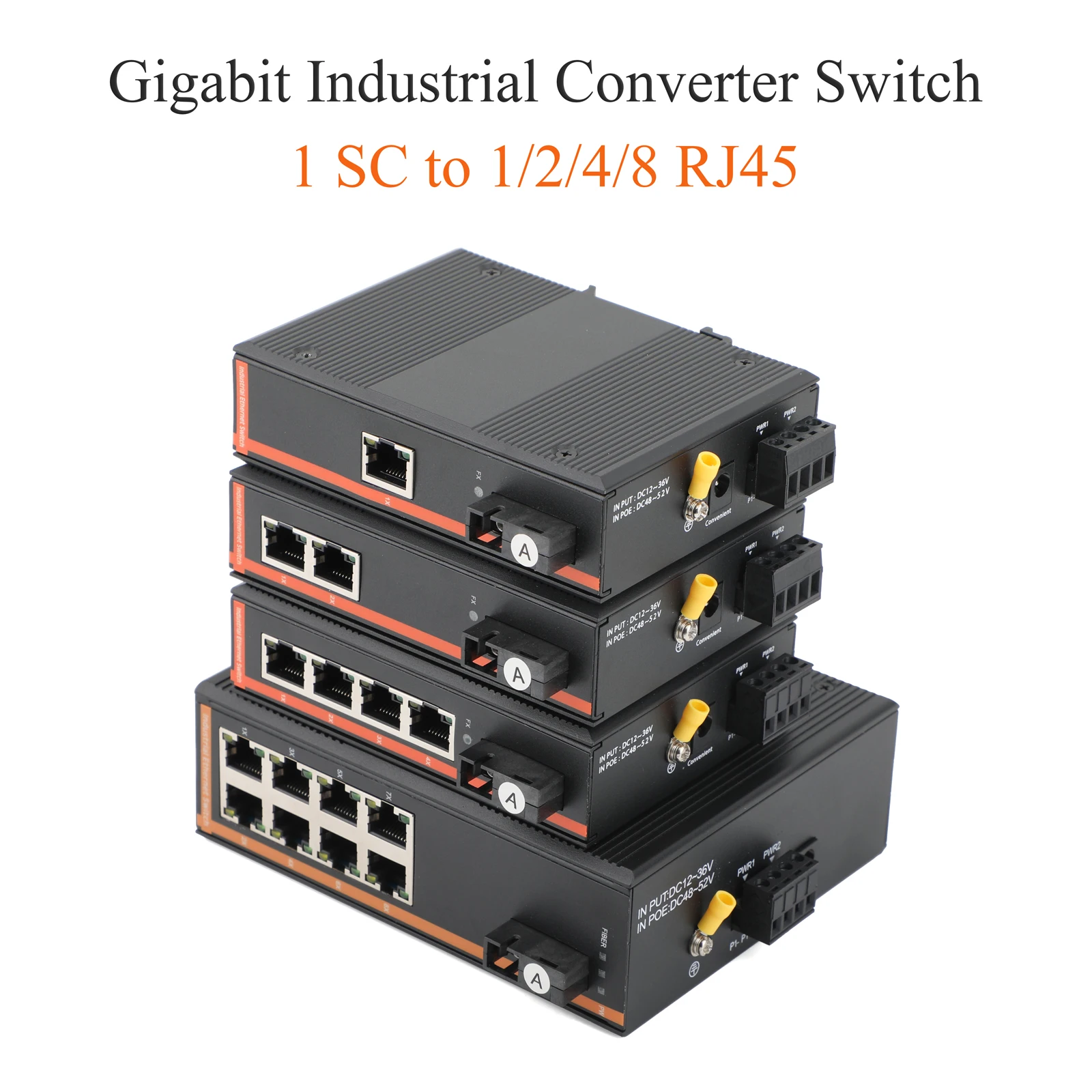 Comprar 1 Uds 10/100/1000M Gigabit convertidor de medios industriales modo único 1 fibra a 1/2/4/8 RJ45 UPC/APC SC puerto A/B/A + B Kit de puertos