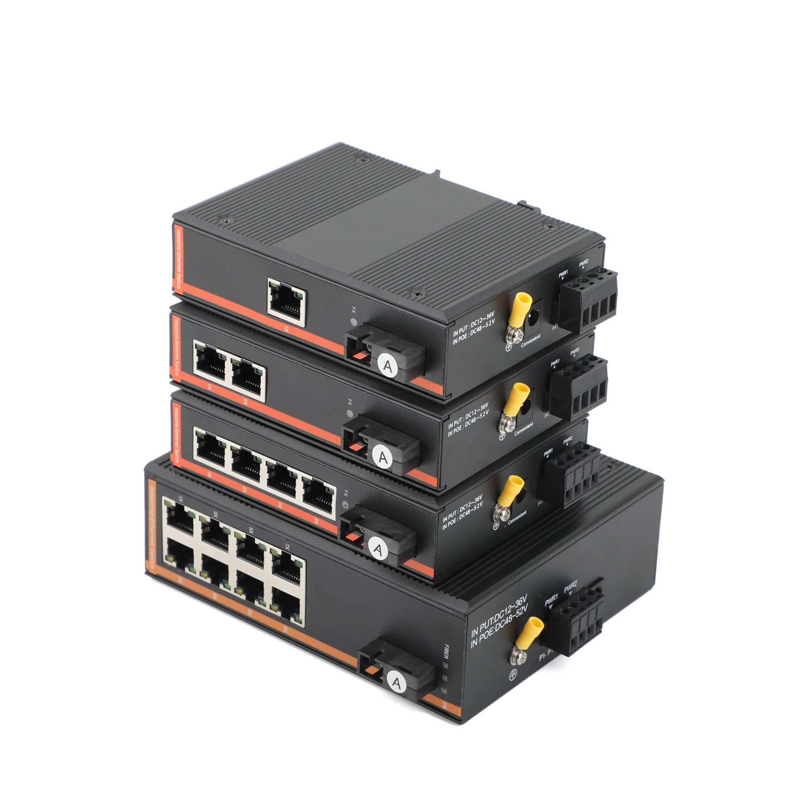 Una solución de transmisión de fibra de alta velocidad diseñada para escenarios industriales, que admite velocidad Gigabit (1000 Mbps) y interfaz SC de fibra única, con extremo A (transmisor), extremo B (receptor) opcional y múltiples modos de configuración de puerto eléctrico, para cumplir las necesidades de construcción flexibles de redes de fibra punto a punto.