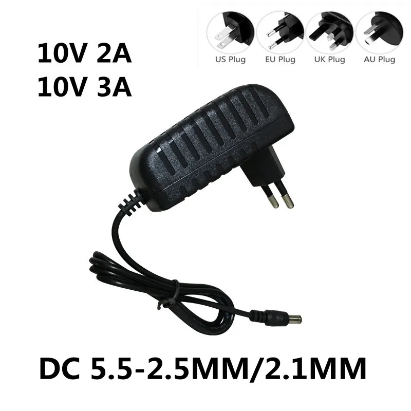 Comprar 1 Uds 100-240V CA a CC 10V 0.5A 1A 2A 3A adaptador de corriente adaptador de cargador convertidor de 10 V UE EE. UU. Reino Unido AUPlug 5,5mm x 2,5mm