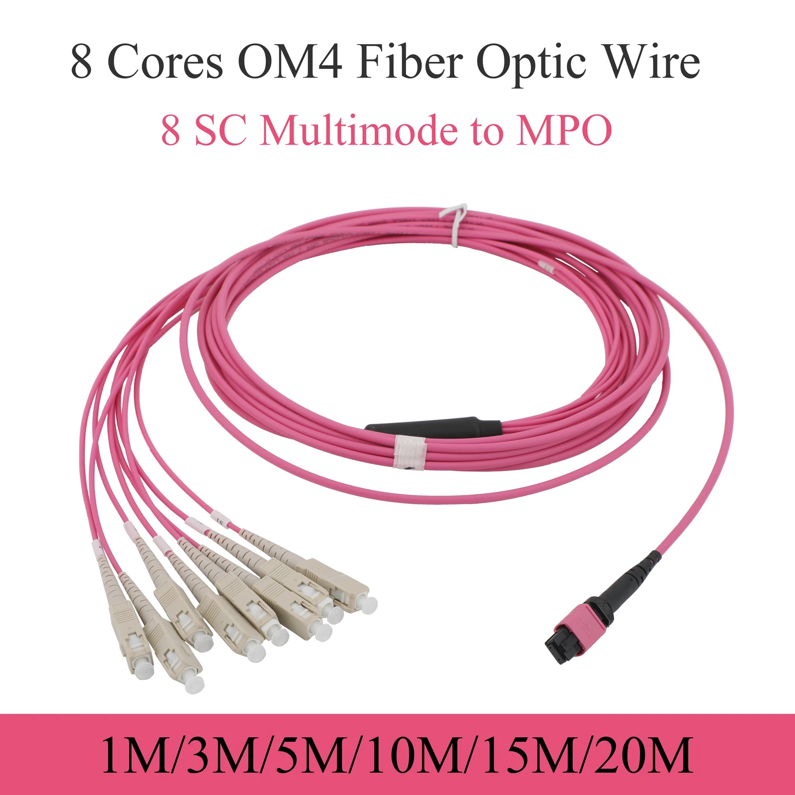 Comprar 1 Uds 10G multimodo 8 núcleos MPO a 8SC OM4 Cable de extensión de fibra óptica 1M/3M/5M/10M/15M/20M Cable de conexión de fibra óptica
