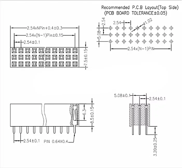 1 Uds 2,54mm 3*40P tres filas macho y hembra 3x40 conector pin PCB separado fila de pines 3x40p pies chapados en oro cabezal doblado de 90 grados