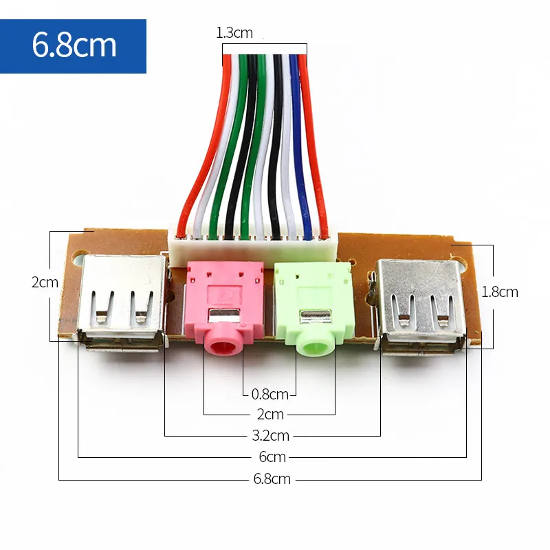 Comprar 1 Uds 2 USB PC caja de ordenador 6,8/7,4/7,8 cm Panel frontal puerto de Audio USB Cables de auriculares de micrófono entrada y salida de Audio de PC cercana