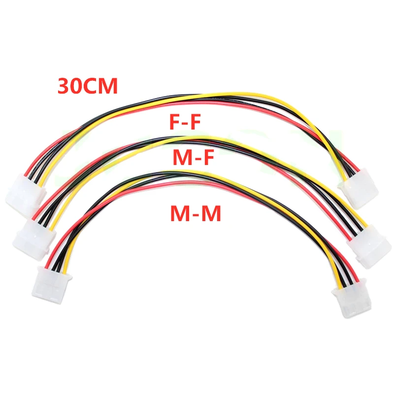Comprar 1 Uds 30cm fuente de alimentación de ordenador IDE Molex Cable de alimentación de extensión macho hembra de 4 pines Cable de núcleo de alambre de cobre puro paso de 5,08mm