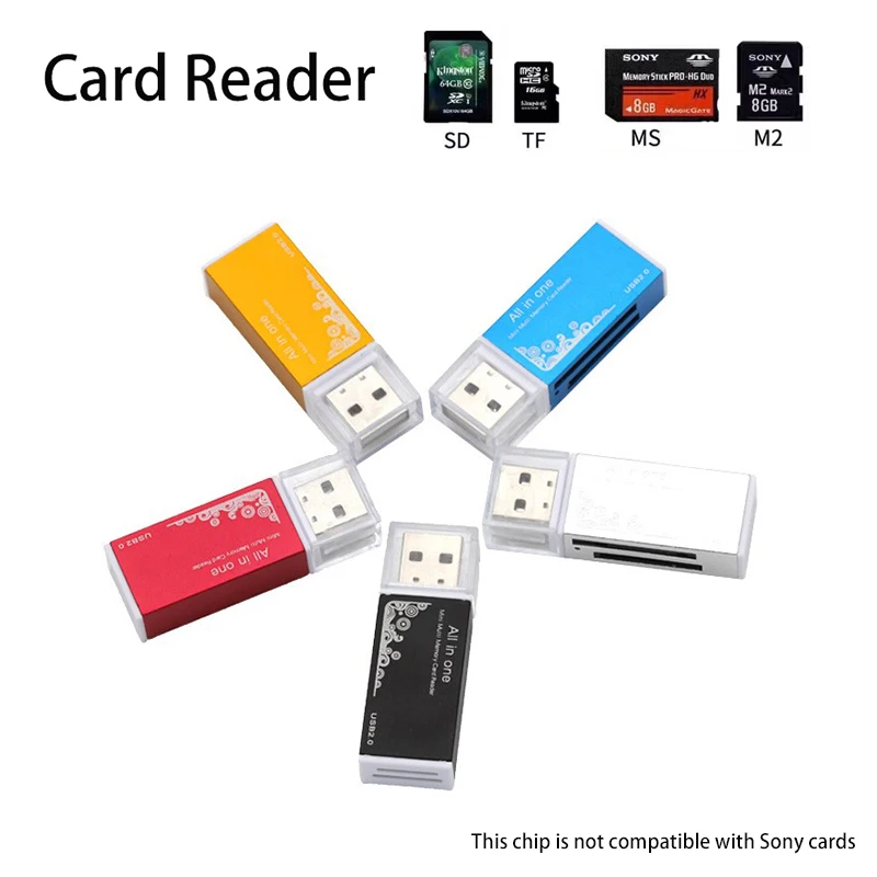 Comprar 1 Uds 4 en 1 lector de tarjetas USB 2,0 lector de tarjetas múltiples adaptador de memoria para Memory Stick Pro Duo Micro SD/T-Flash/M2/MS lector de tarjetas