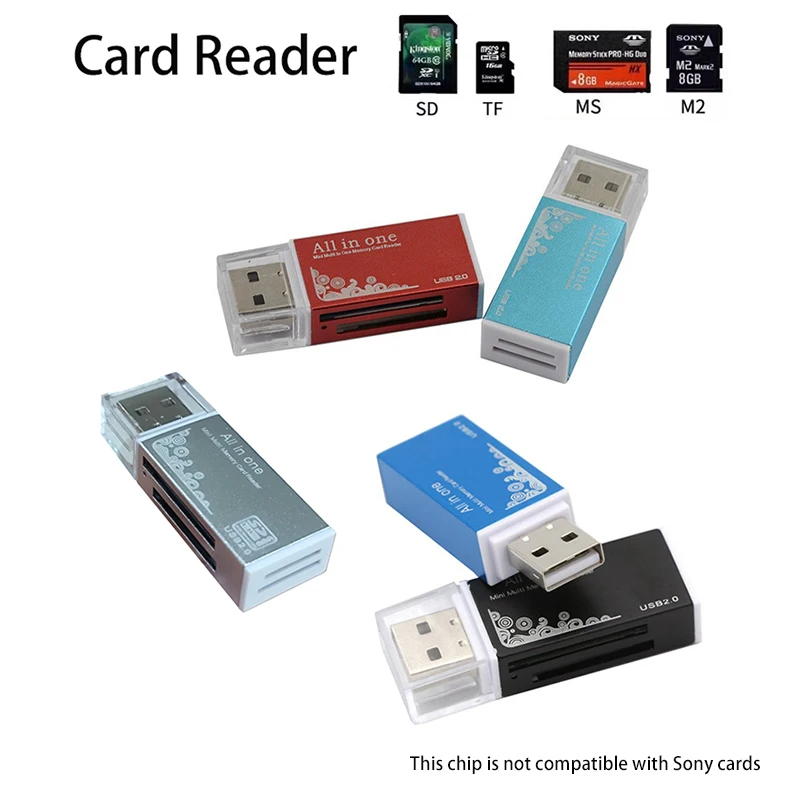 Comprar 1 Uds 4 en 1 lector de tarjetas USB 2,0 lector de tarjetas múltiples adaptador de memoria para Memory Stick Pro Duo Micro SD/T-Flash/M2/MS lector de tarjetas