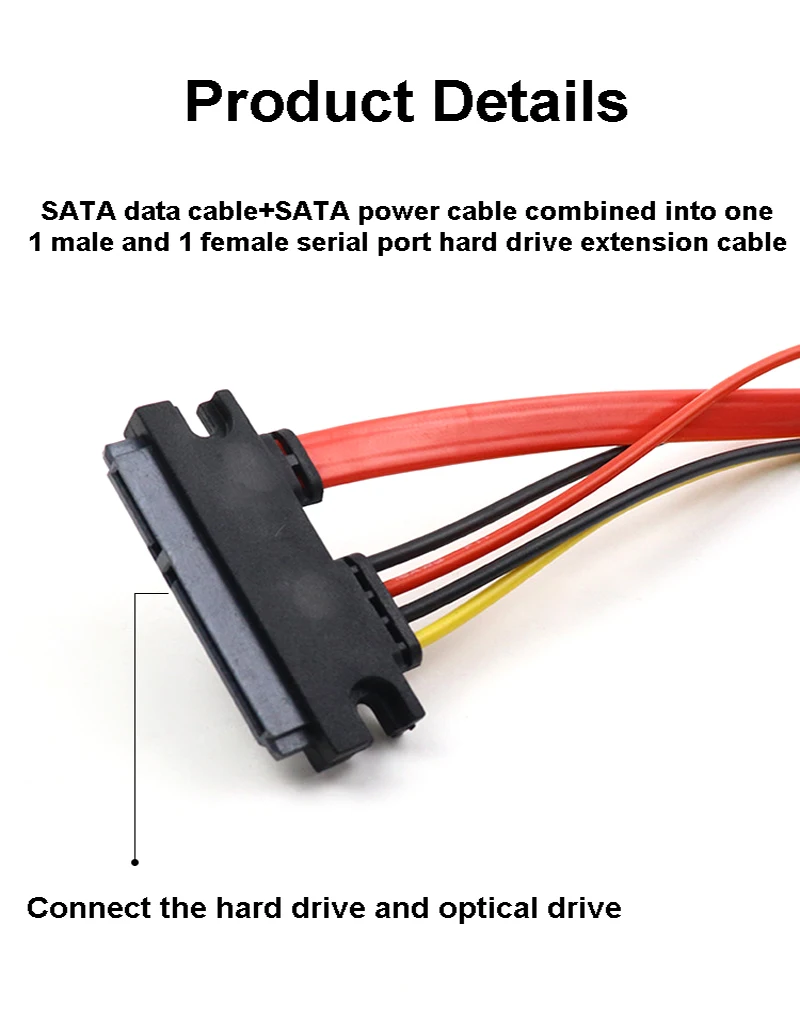 El cableado delgado y flexible permite un fácil enrutamiento.Conecte cada unidad serial ATA al conector de alimentación interno estándarInterfaz: (7+15) SATA macho de 22 pines (7+15) hembra SATA de 22 pinesLa extensión SATA de 22 pines incluye alimentación de 15 pines y datos de 7 pines con conexiones hembra y macho