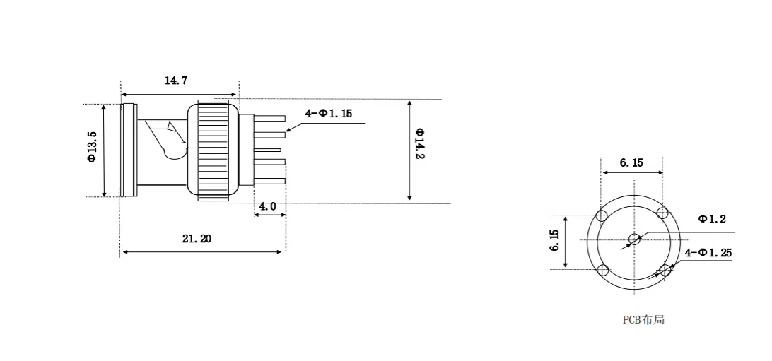 Comprar 1 Uds 50R conector BNC cabezal de soldadura pcb conector de placa de soldadura bnc de cuatro patas BNC macho BNC-KE macho enchufe recto