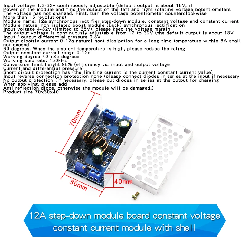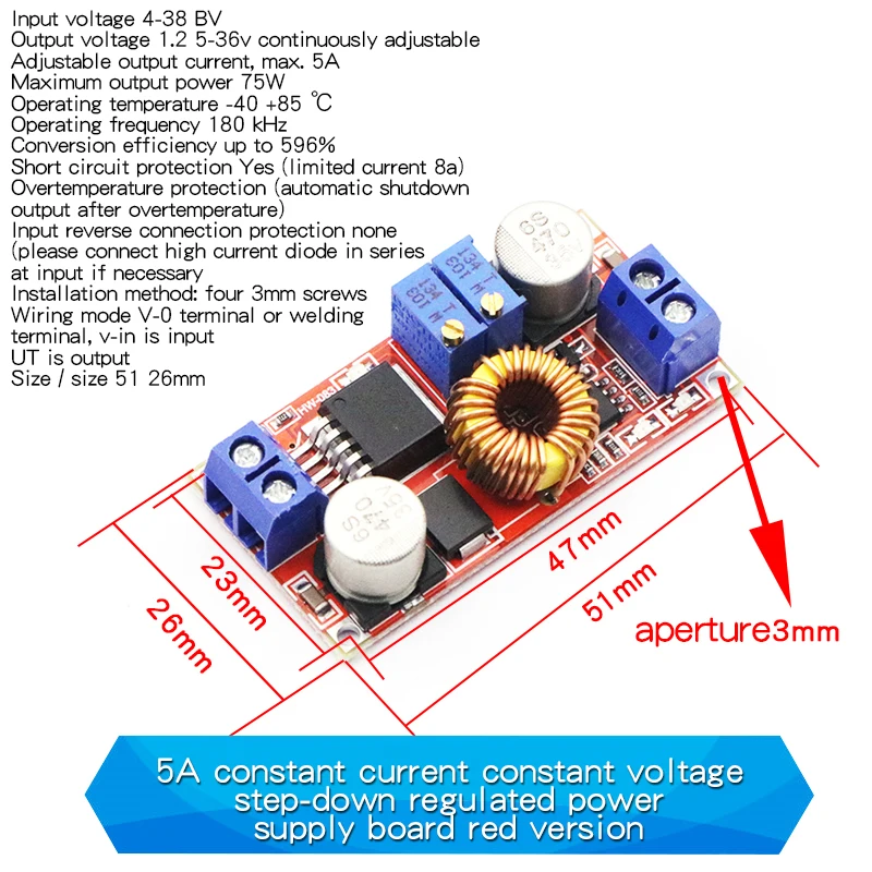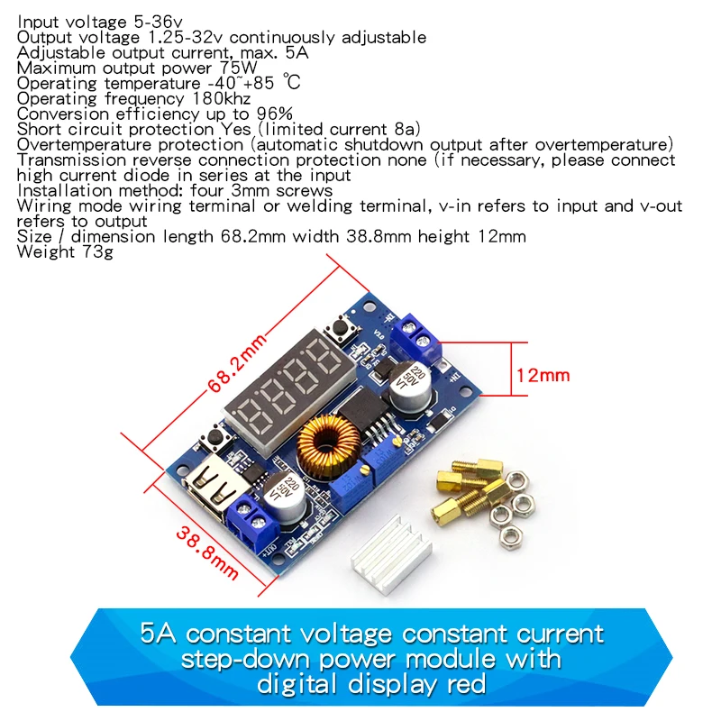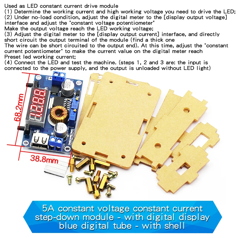 1 Uds 5A voltaje constante corriente constante placa de módulo de potencia reductor voltaje de carga carcasa de pantalla de potencia de corriente