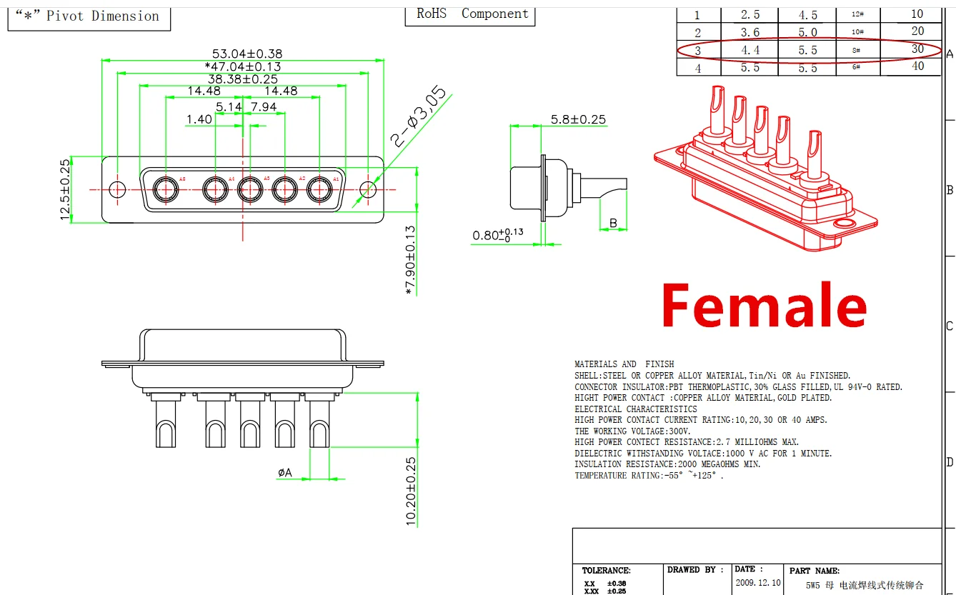 1 Uds 5W5 30A conector de alta corriente macho hembra chapado en oro adaptador de D-SUB tipo de soldadura enchufe de 5 pines soldadura de alta potencia DB