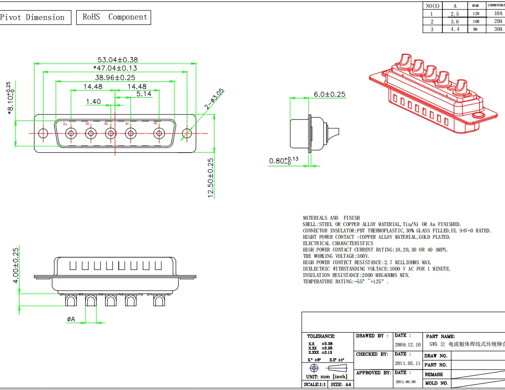 1 Uds 5W5 30A chapado en oro macho hembra conector de alta corriente adaptador D-SUB tipo soldadura enchufe de 5 pines soldadura DB de alta potencia