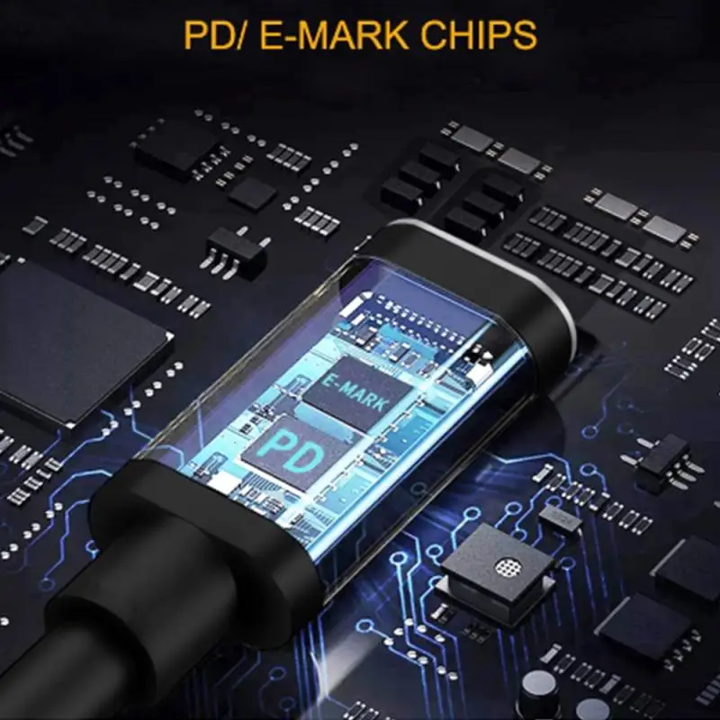 3. El cable de carga USB C a USB C PD requiere un chip E-marker incorporado; de lo contrario, no funcionará.