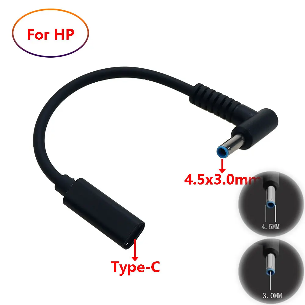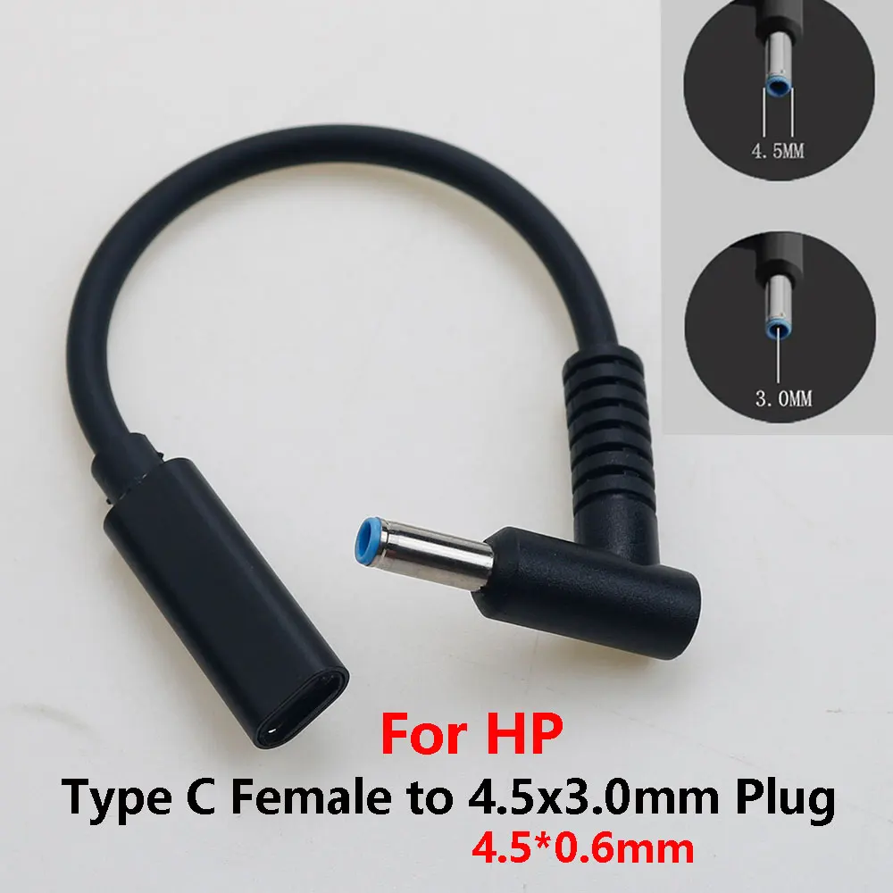Comprar 1 Uds 65W tipo C USB hembra a 4,5x3,0mm convertidor de enchufe USB C PD Cable de carga rápida para cargador de ordenador portátil HP DC 4,5*3,0 15cm