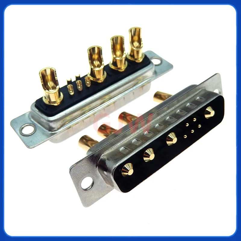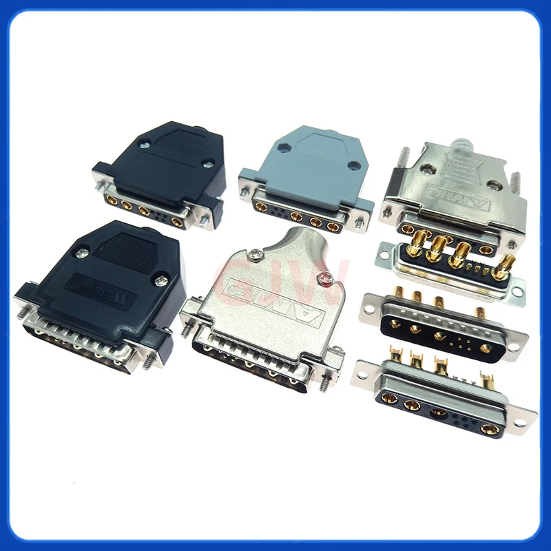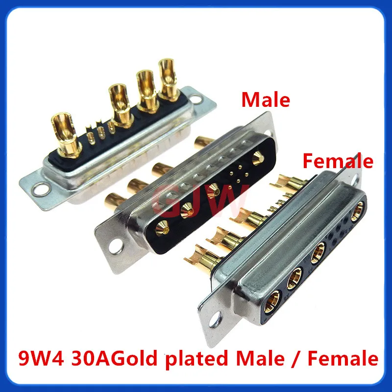 Comprar 1 Uds 9W4 30A conector de alta corriente macho hembra chapado en oro adaptador de D-SUB tipo de soldadura 5 + 4 enchufe jack alta potencia 9 posiciones