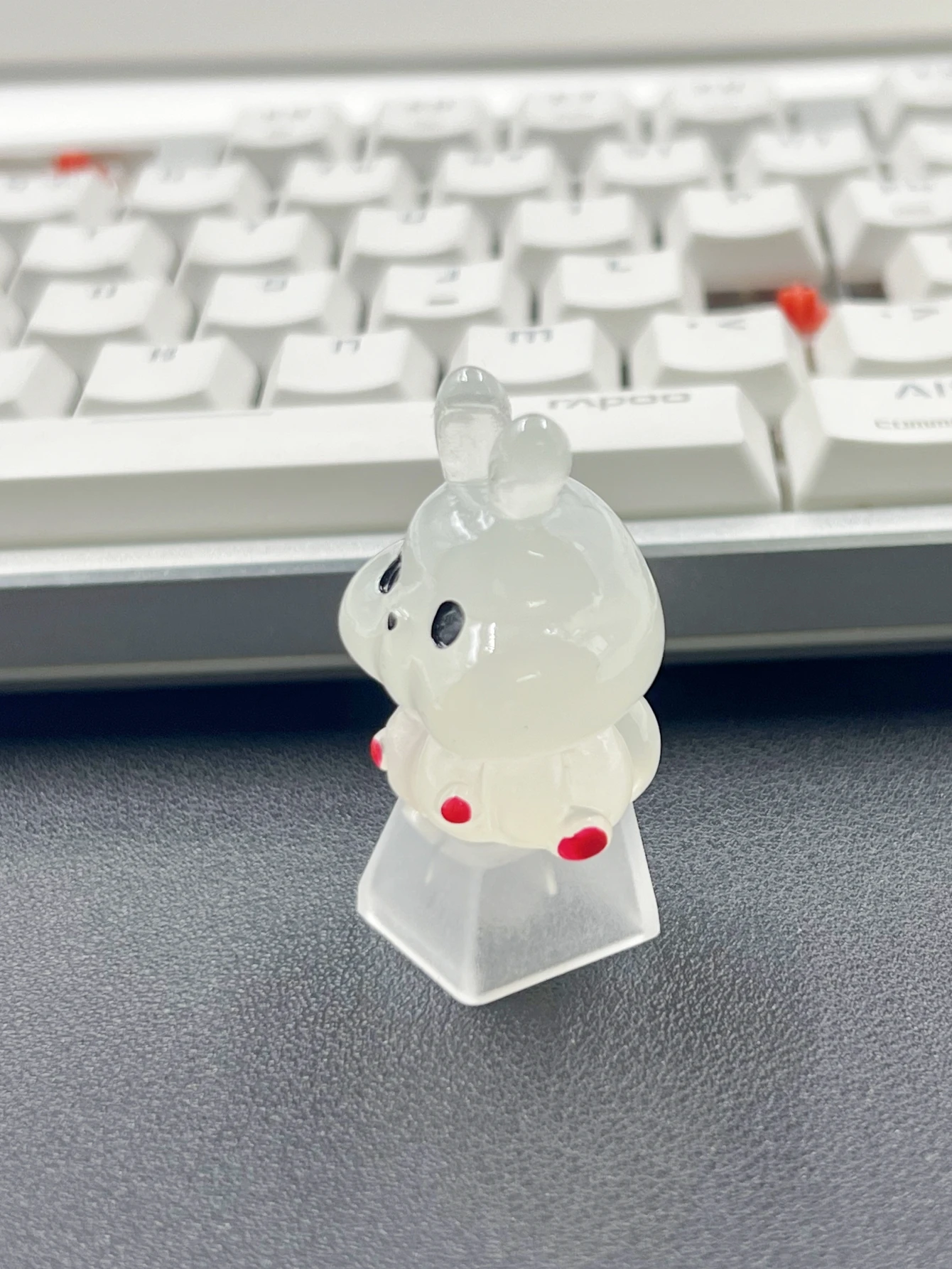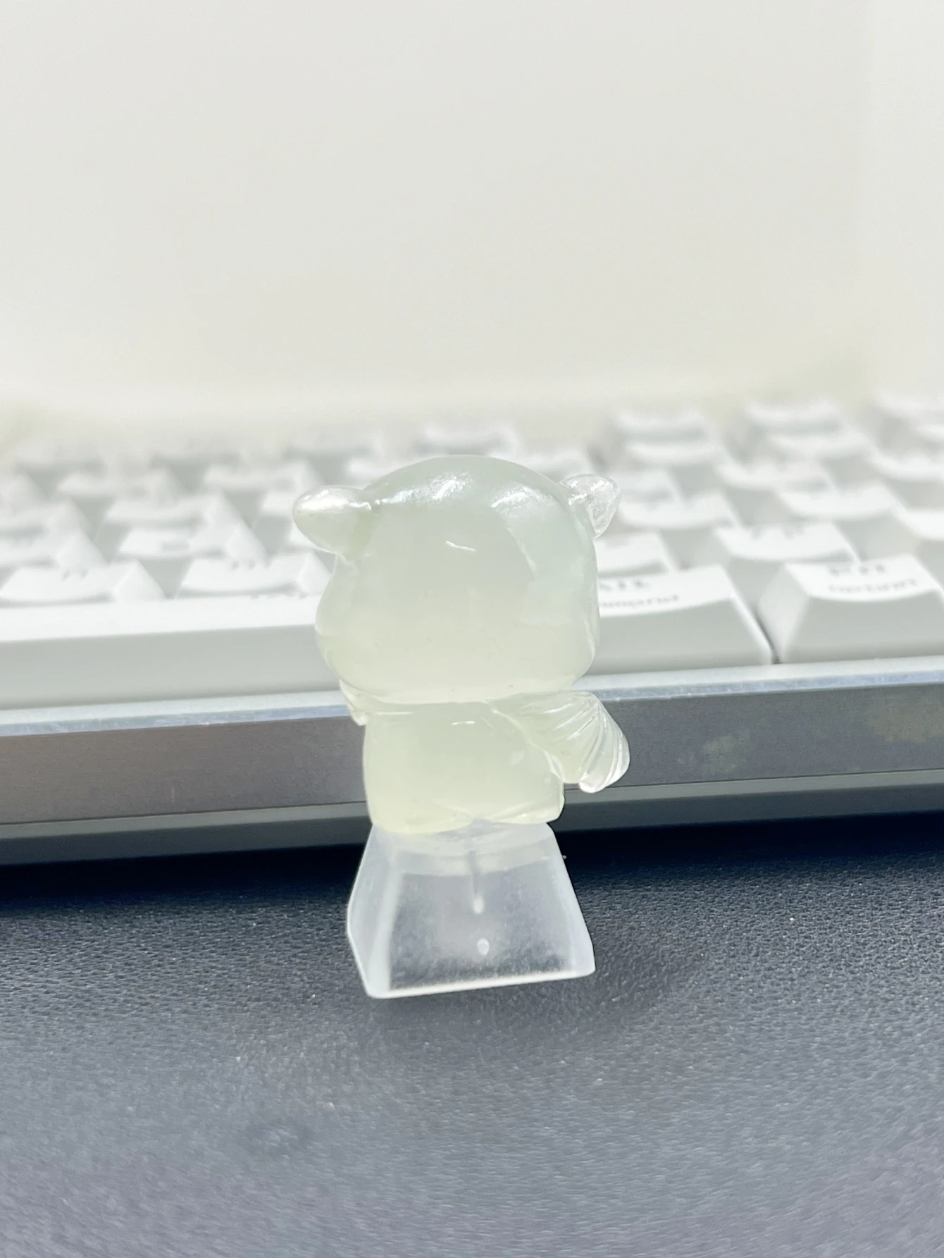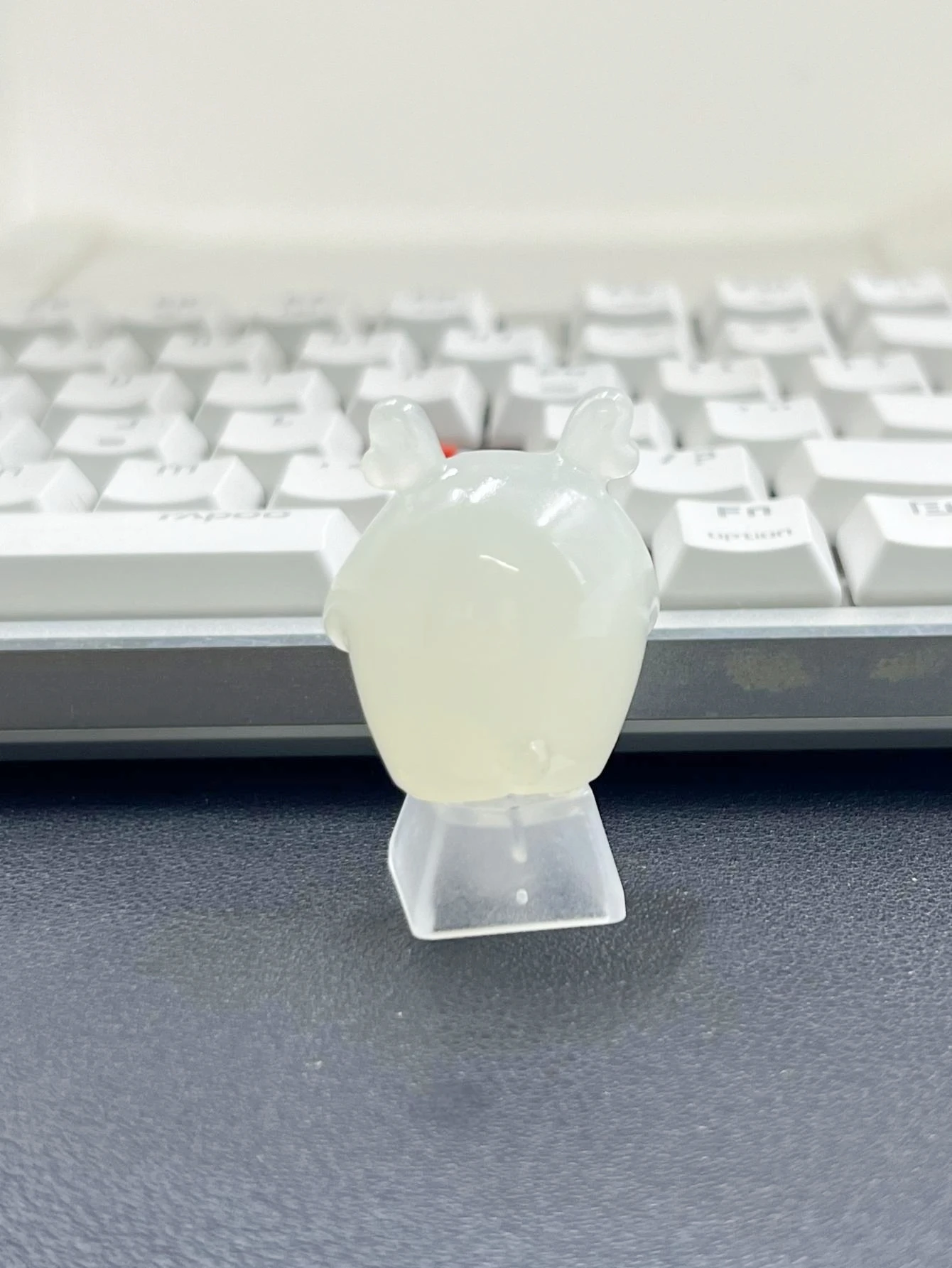 Este chico es muy lindo pero muy grande. Es lo suficientemente transparente como para iluminarse con luces RBG. Tengo un teclado de 65% y es demasiado grande para mi configuración. Si tuviera un teclado 100% probablemente trabajaría con él. Por ahora, lo he puesto en mi teclado de prueba, que uso como una especie de juguete antiestrés.